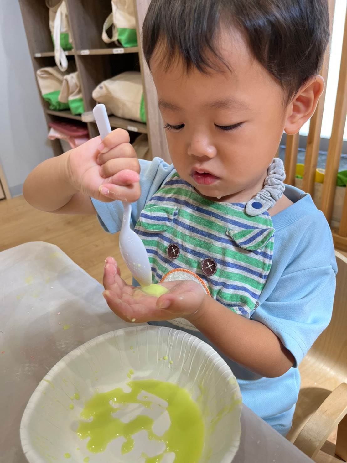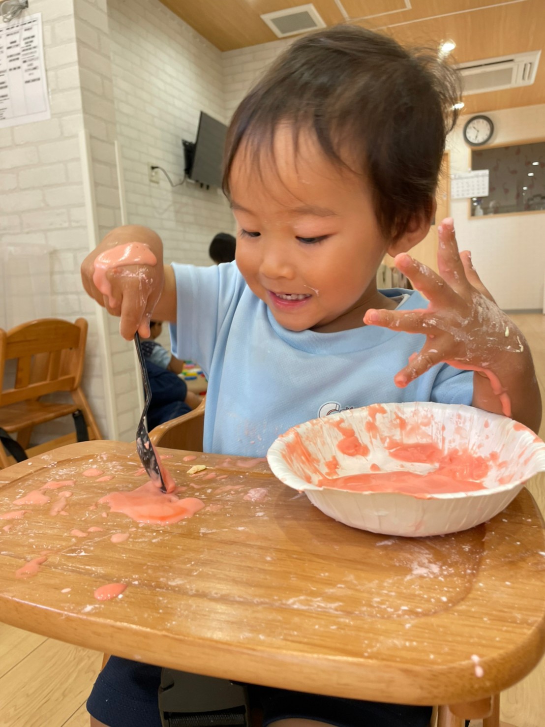 スプーンですくったり、手で握ってみたり思い思いにたのんでいました❤️