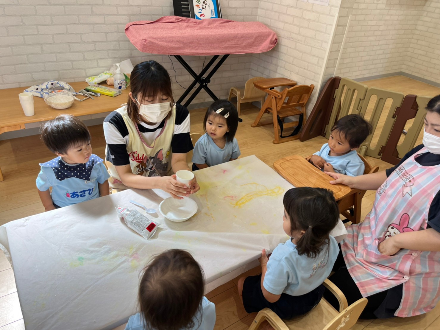 触ってみると、固いけど…手に乗せるとドロドロっ〰️と流れる不思議な感触に子ども達は夢中になりあそんでいましたよ☺️🎶
