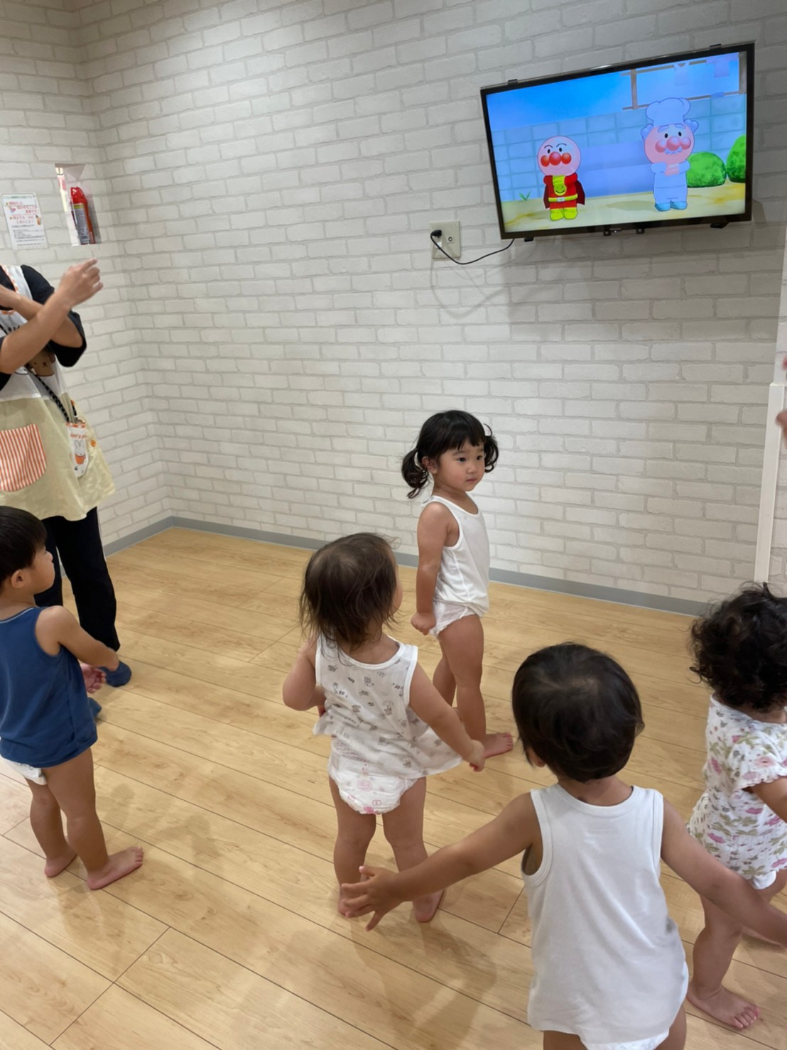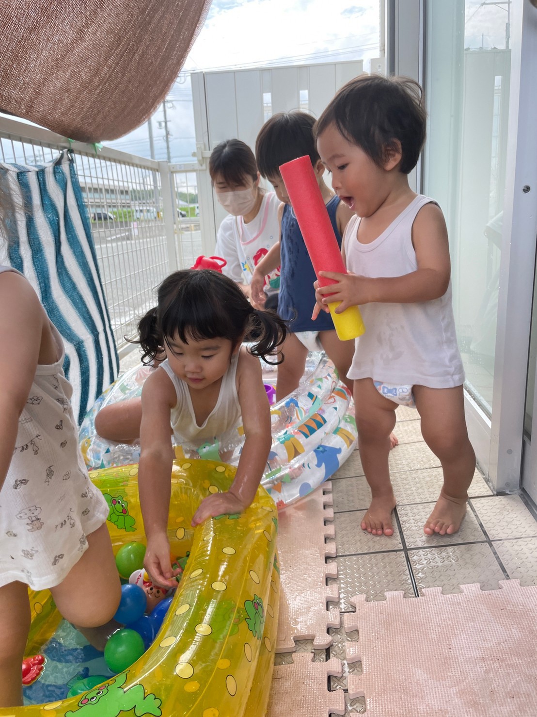 その後は、アンパンマンのラジオ体操をしてから、水遊びをしました☀️