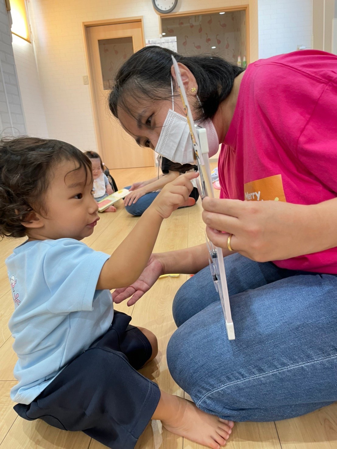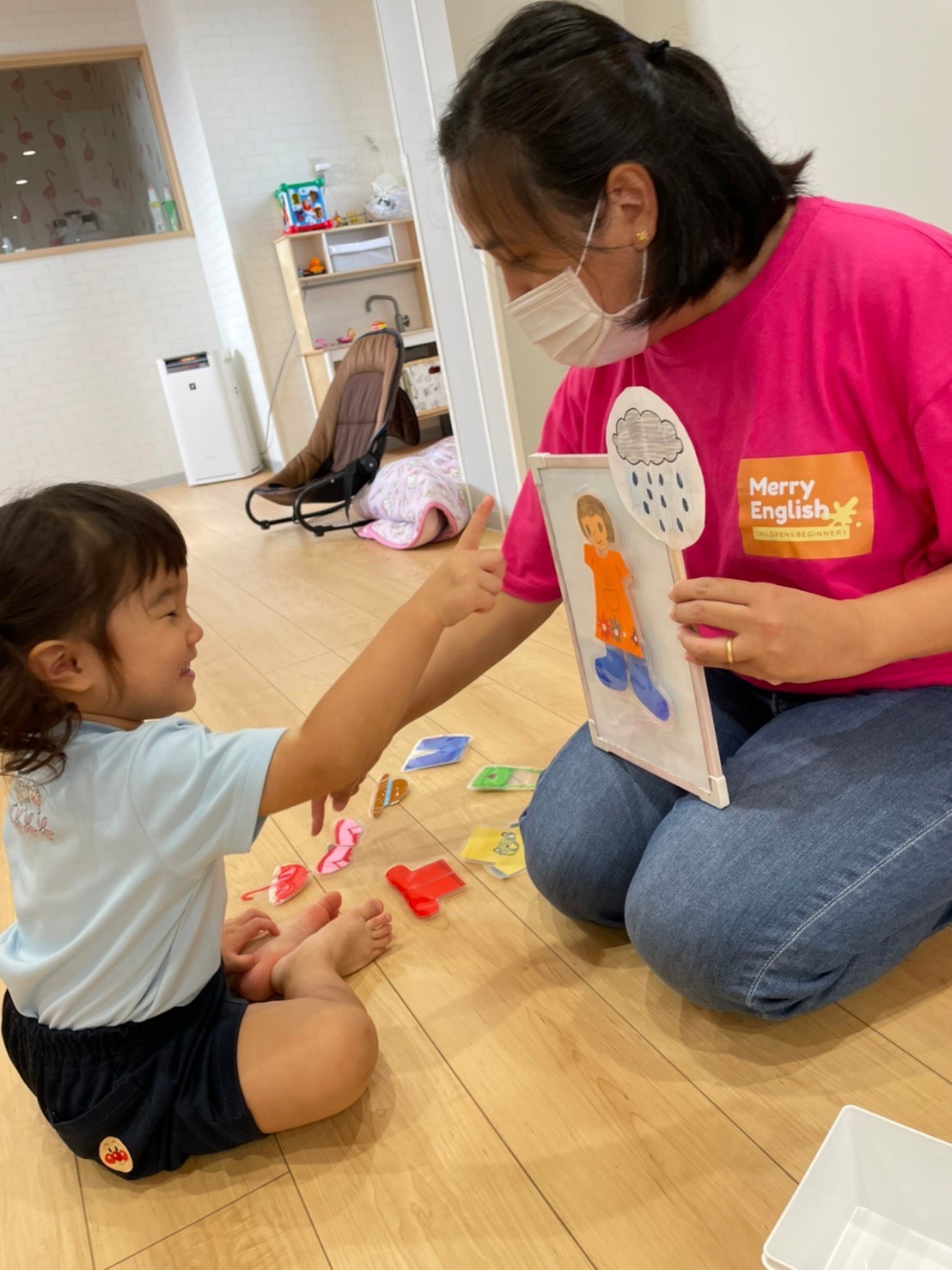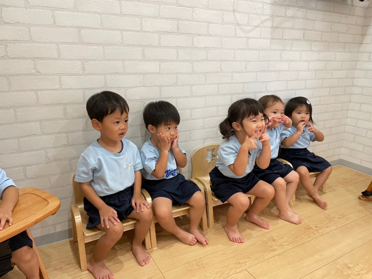今日は子どもたちの大好きな英語教室の日でした😉講師の先生が来られると、遊んでいた玩具を自分から片付けたり、椅子に座り始まるのを楽しみに待っているお友だち💕