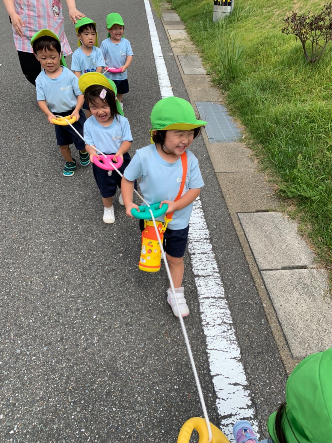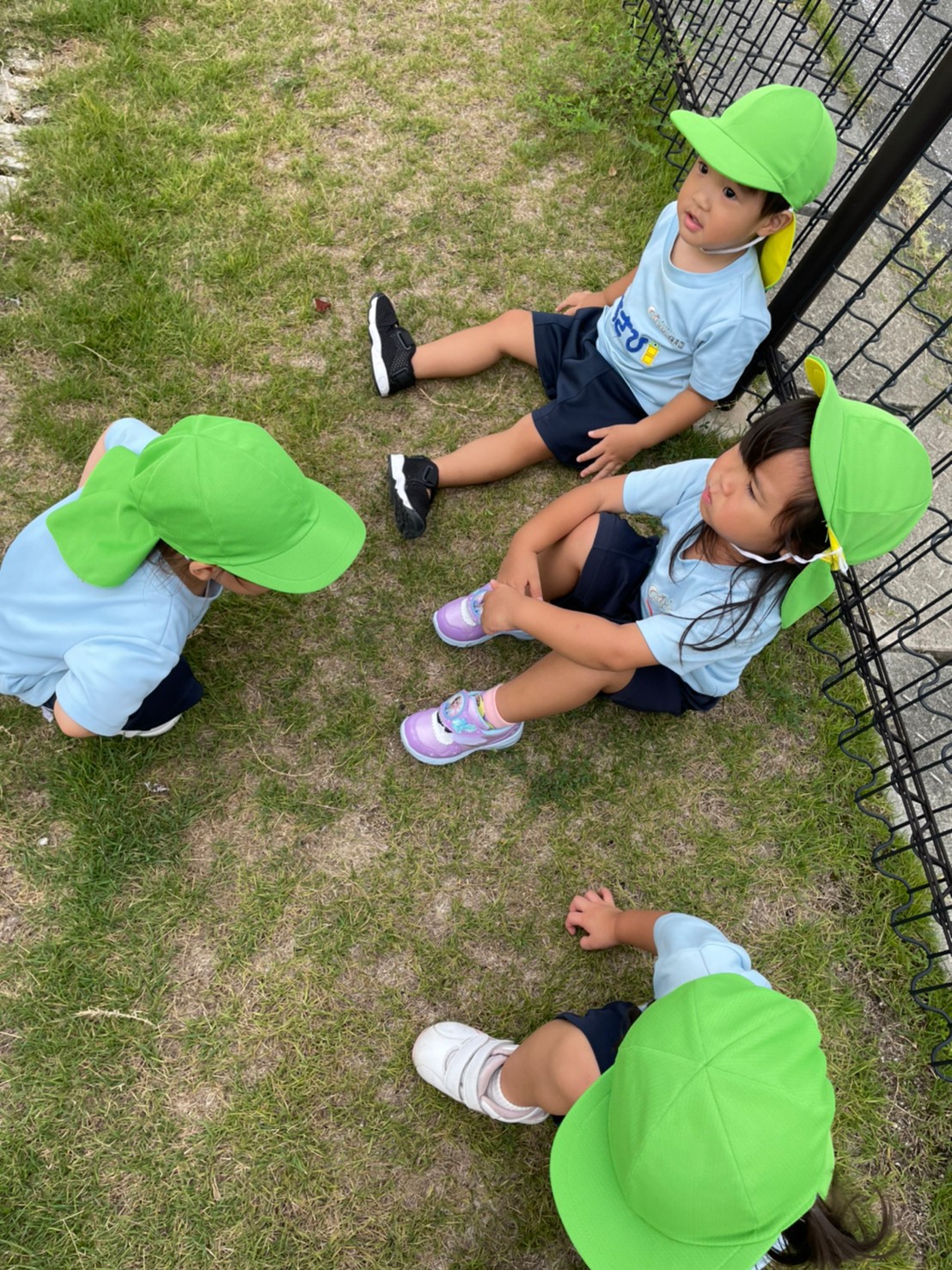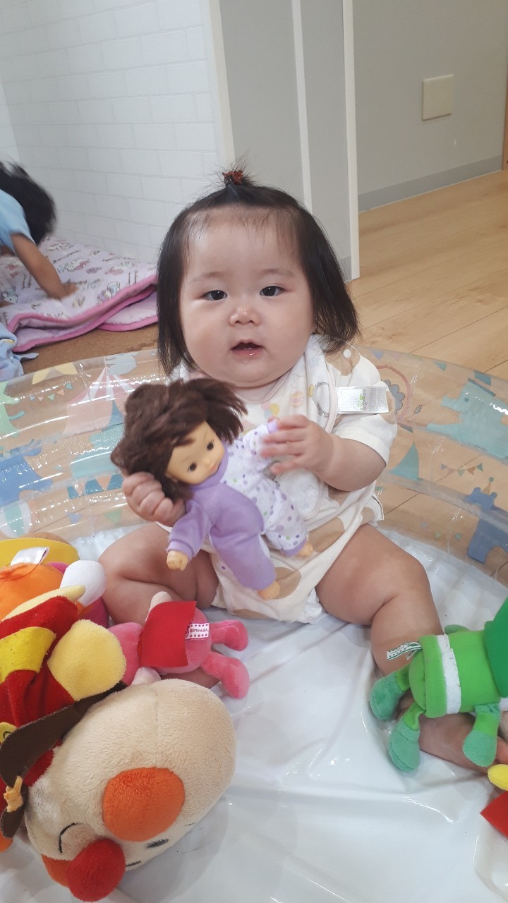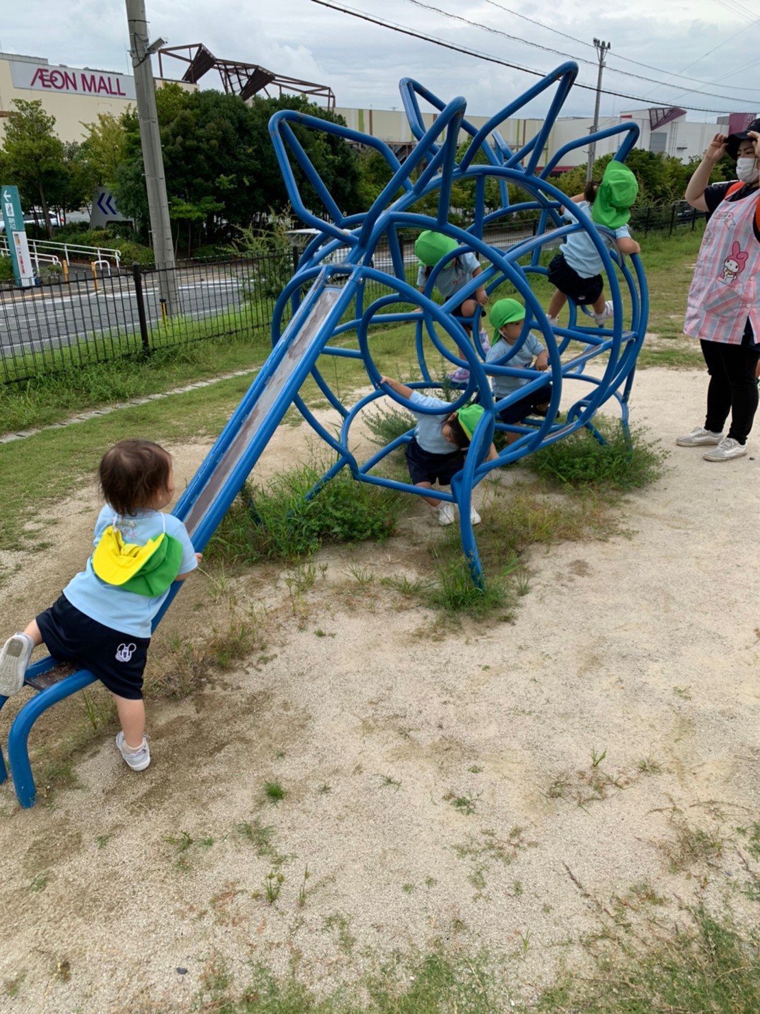 久しぶりなのでとっても嬉しそうな子どもたち💗公園につくと、恐竜の遊具に登ったり滑り台ではきちんと順番に並ぶお友だちの姿もありましたよ😍ヘリコプターをみつけると、みんなで空を見上げて『おーい』と手を振っていました🚁0.1歳のお友だちは、お部屋ですごしましたよ🐻プールの中にぬいぐるみ入れて遊んだりバランス遊具に乗ったりと自分のペースで遊びを見つけて楽しんでいました🐥💗