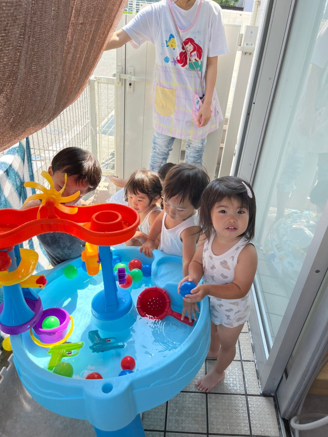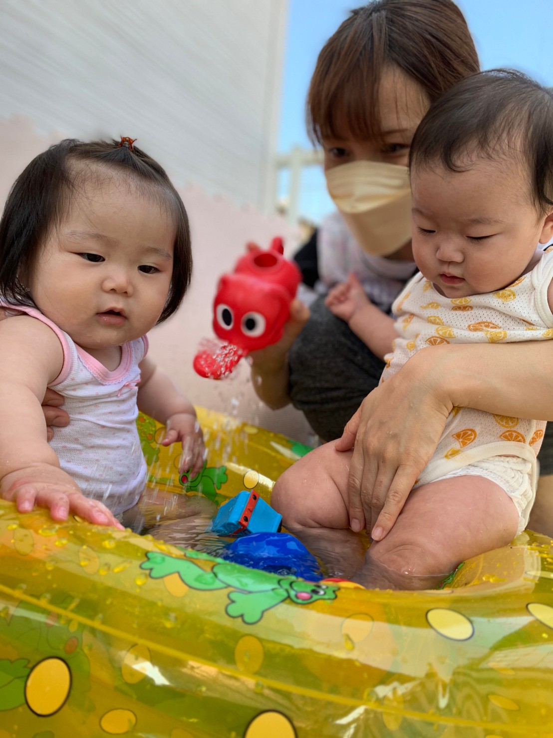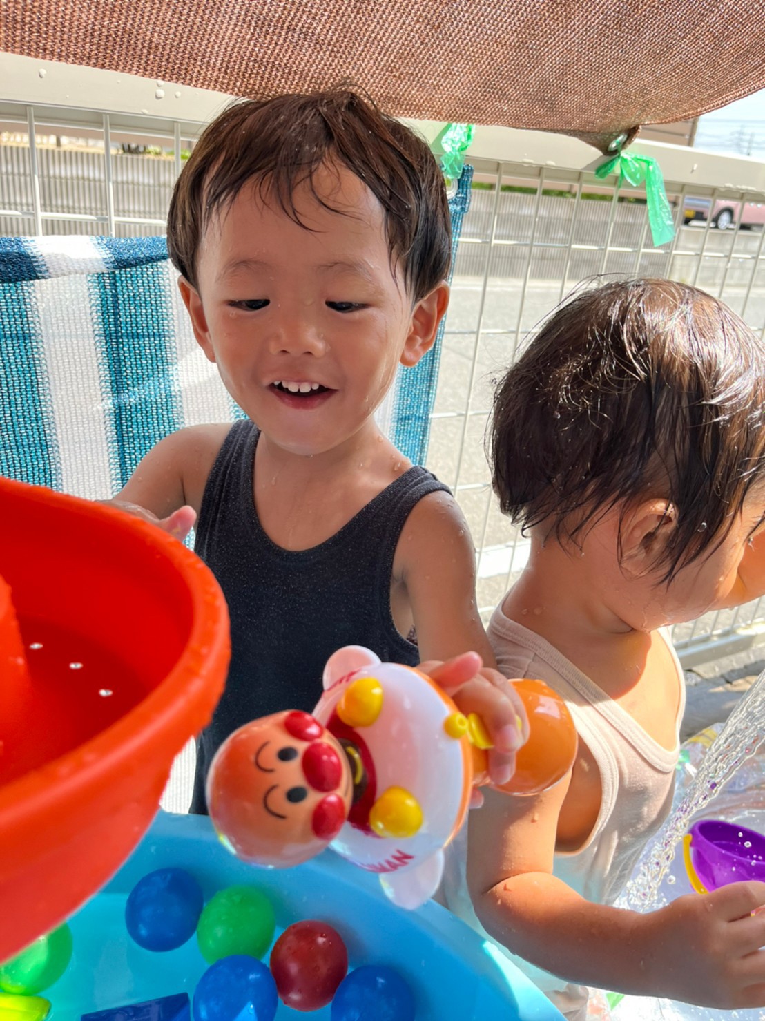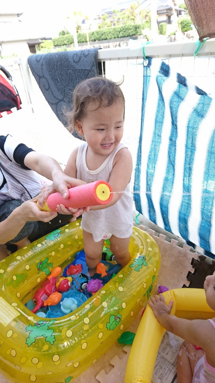 水鉄砲で🔫水を飛ばしたり、自分の身体に水をかけたり水が顔にかかってもへっちゃらなお友だちです😂😆