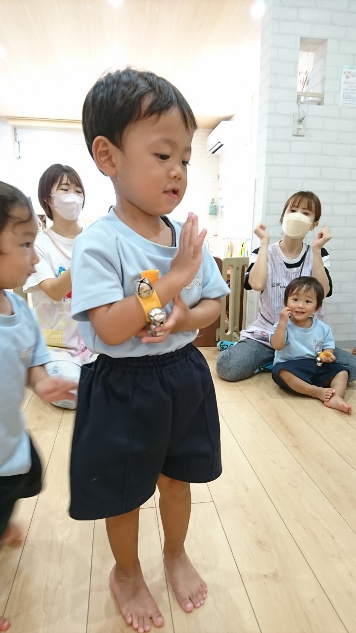 リトミックでは、好きな色の鈴をもらい大満足の子どもたち😆音楽に合わせて『シャンシャンシャンー🎵』と楽しく踊りましたよ👋💓💓