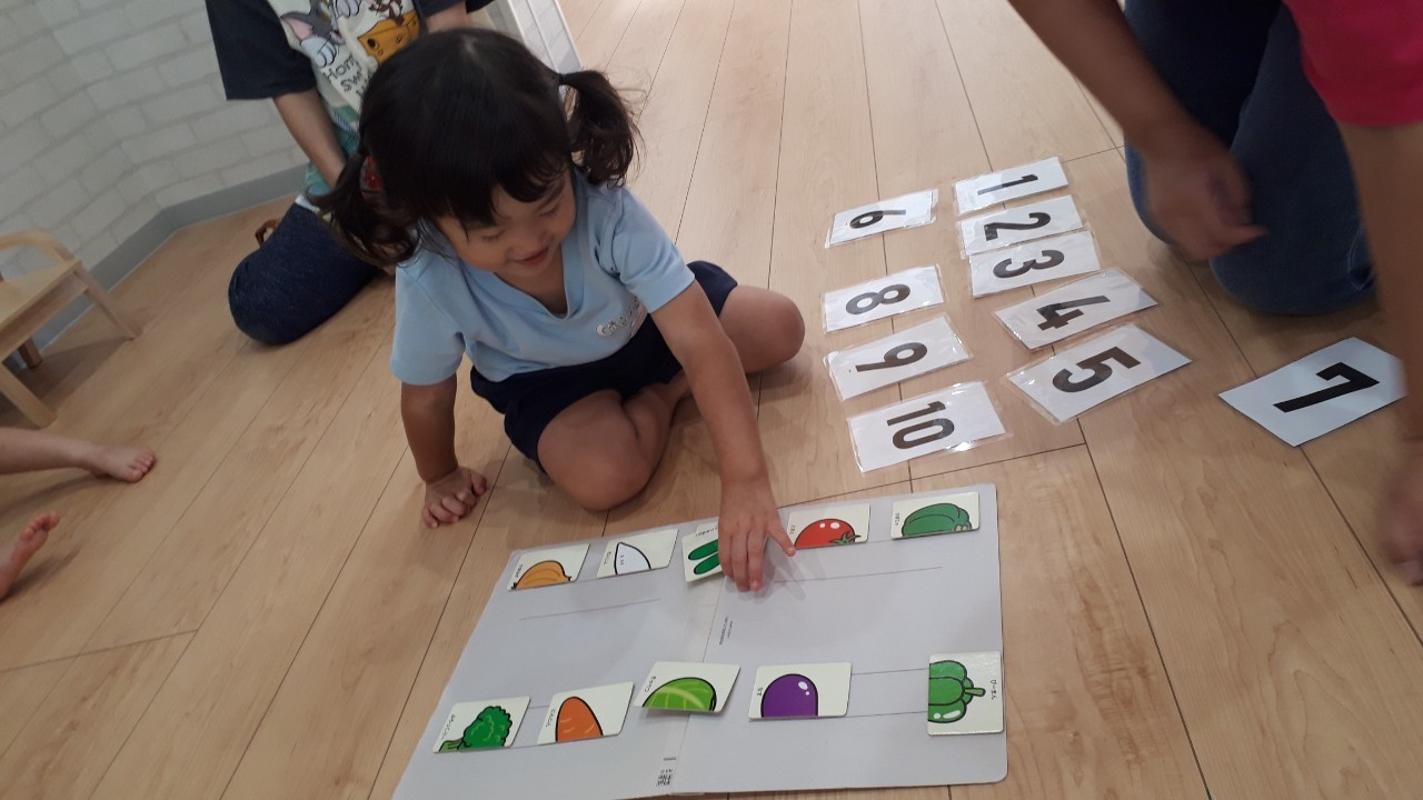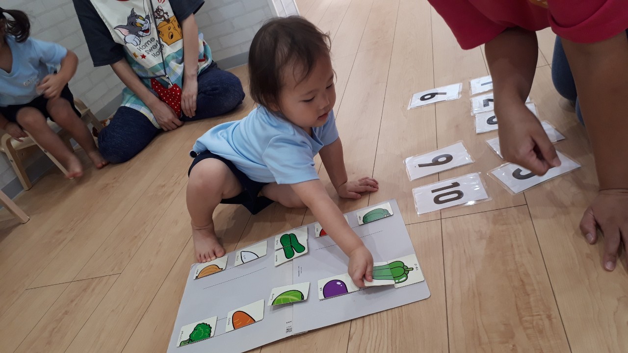 今日は英語教室からスタート♬みんな目をキラキラさせて、嬉しそうに参加していました☺️今日は野菜の英単語を教わり『パンプキーン♪🎃ブロッコリー🥦』と元気いっぱいに発音して、楽しい時間を過ごすことができましたよ✨