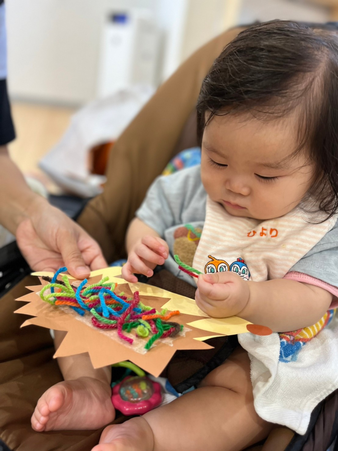 子ども達は毛糸を触って