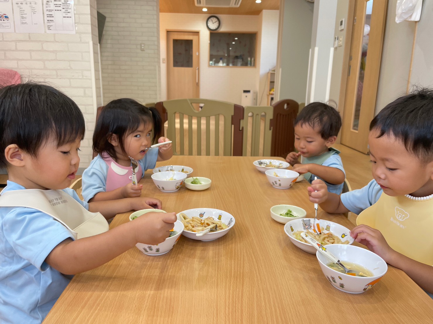 気温が上がってきたので、早めに戸外遊びを切り上げて、お部屋では好きな絵本を見てゆっくり過ごしました📚【ふくつ園の今日の給食です】