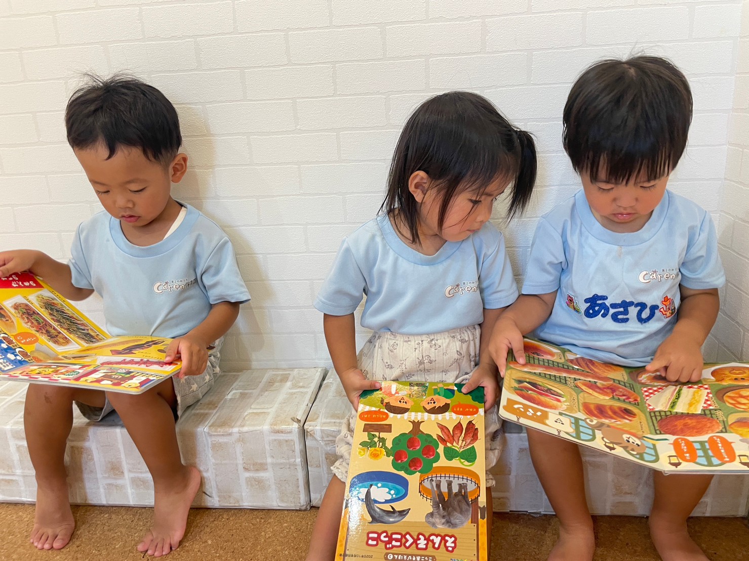 気温が上がってきたので、早めに戸外遊びを切り上げて、お部屋では好きな絵本を見てゆっくり過ごしました📚