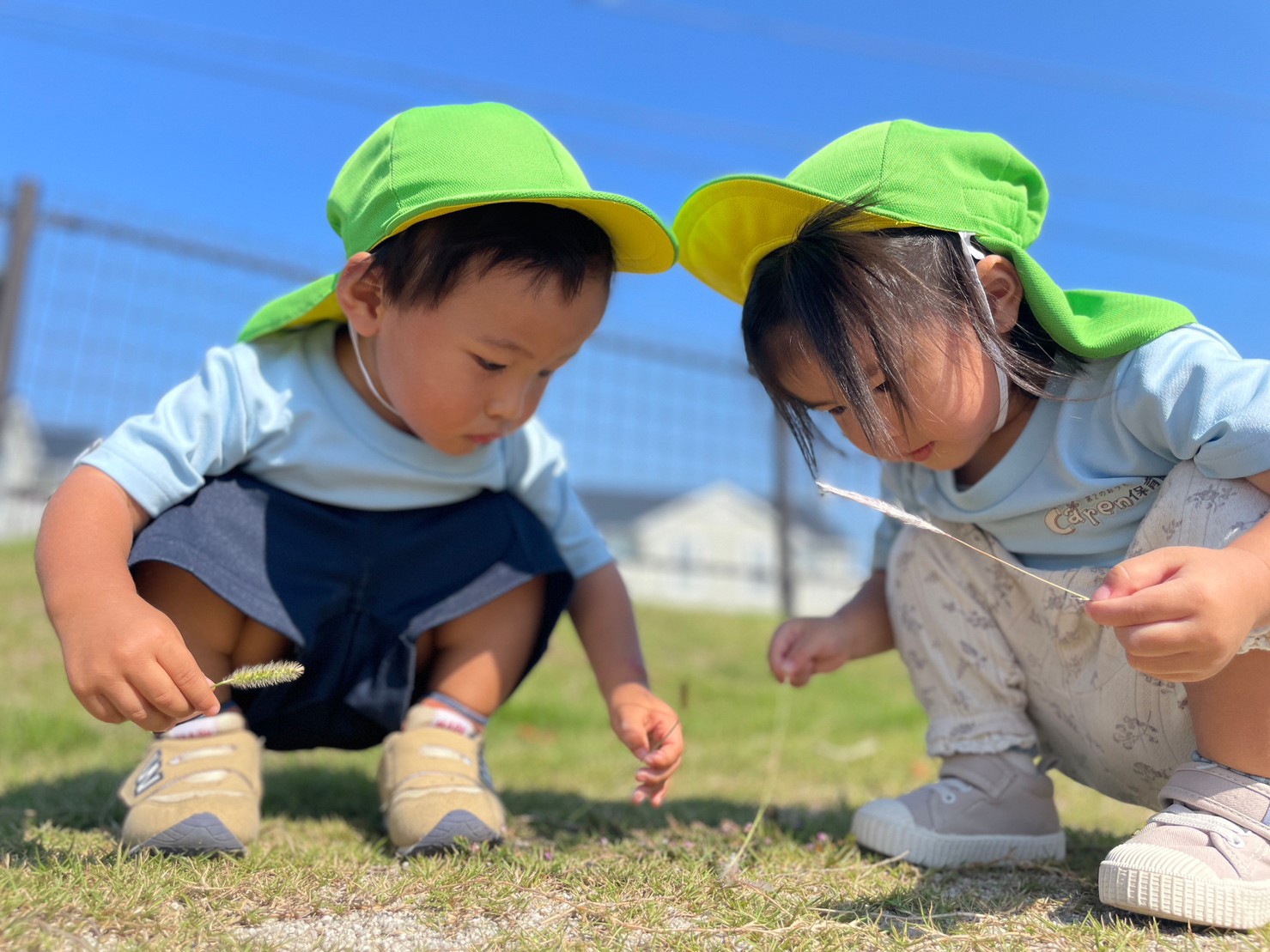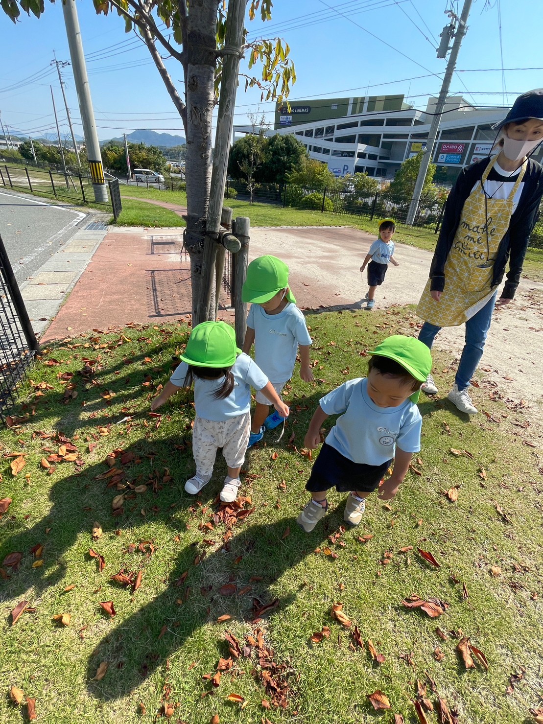 バッタやアリを見つけて観察したり、枯れ葉を踏んだり触ったりしてパリパリの音や感触を楽しんでいましたよ🐜🍂