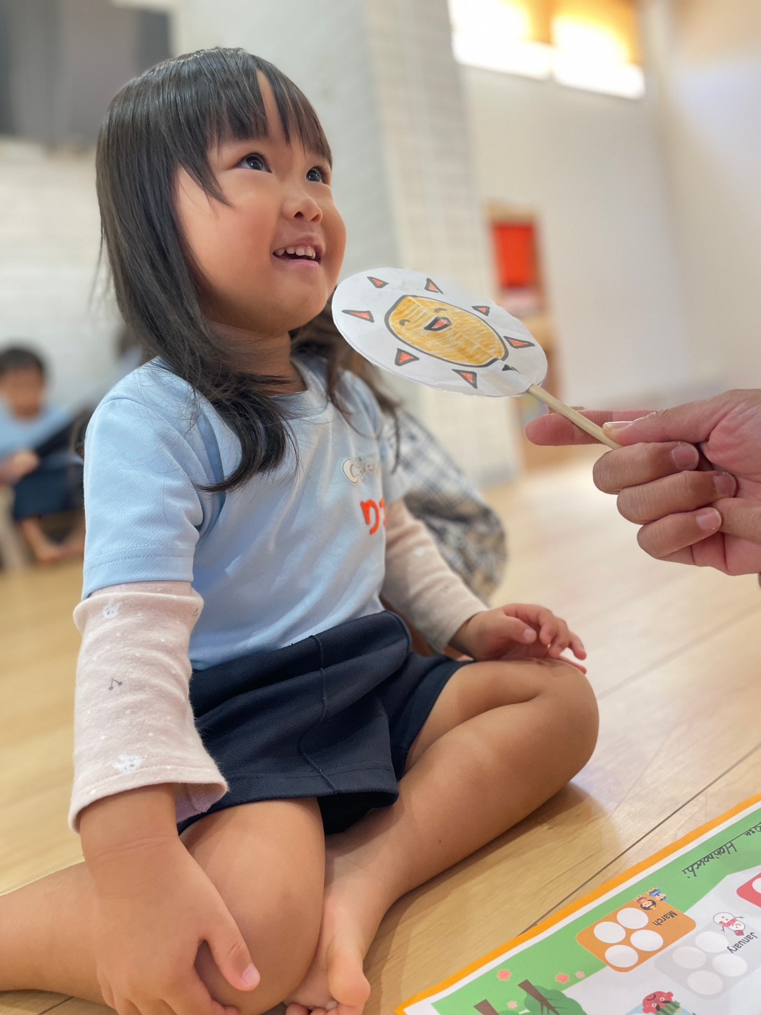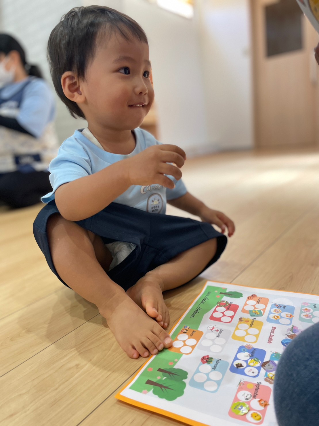 大好きな歌が流れるとノリノリで身体を動かしたり、色やアルファベットカードを元気いっぱい復唱したりして最後まで楽しく参加できました💖