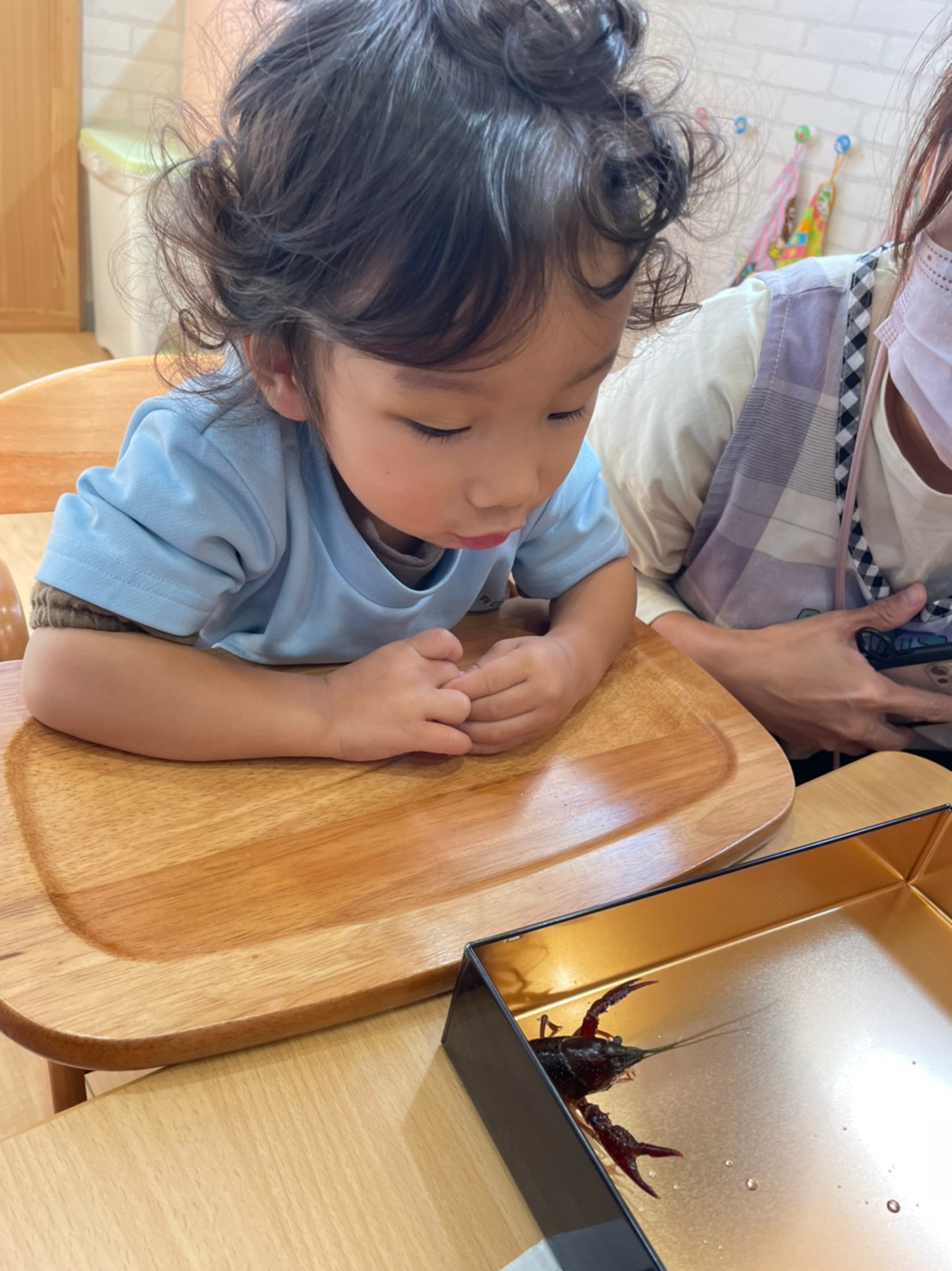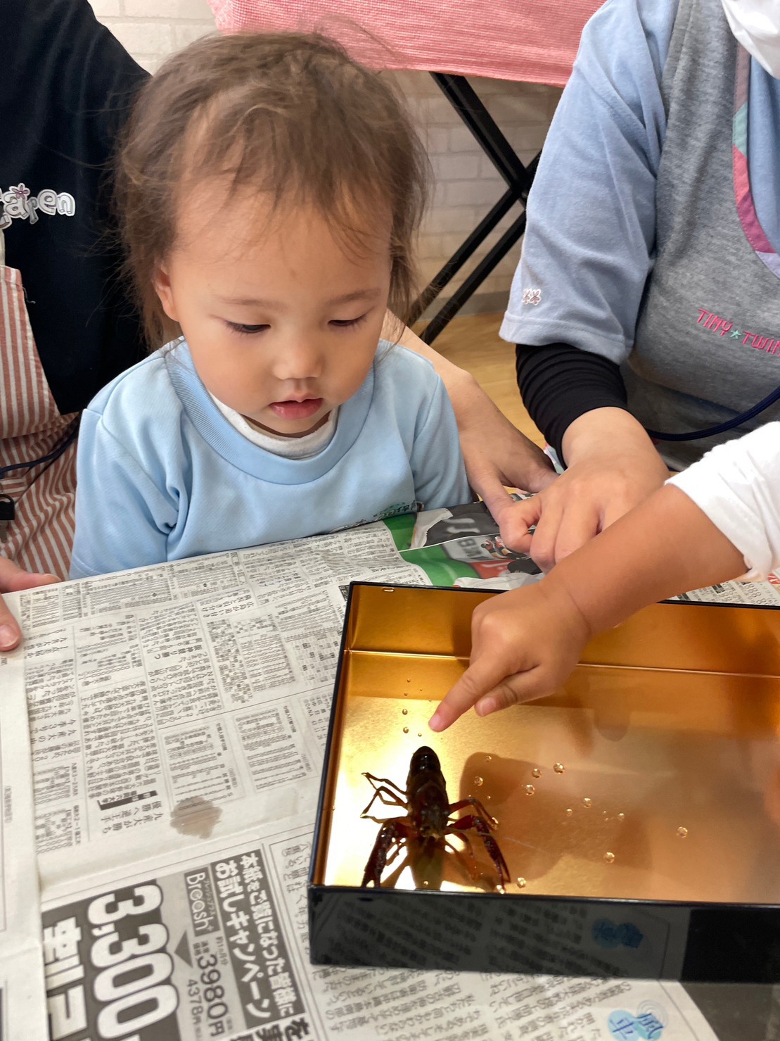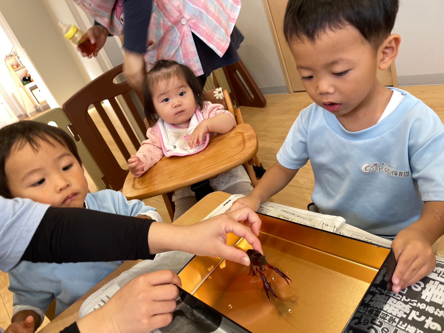 看護師の先生が持ってきてくれたザリガニで