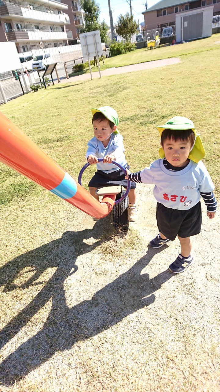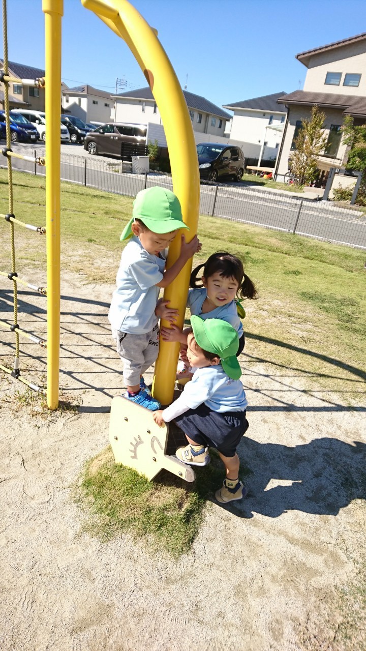 公園では、滑り台🛝や、シーソー