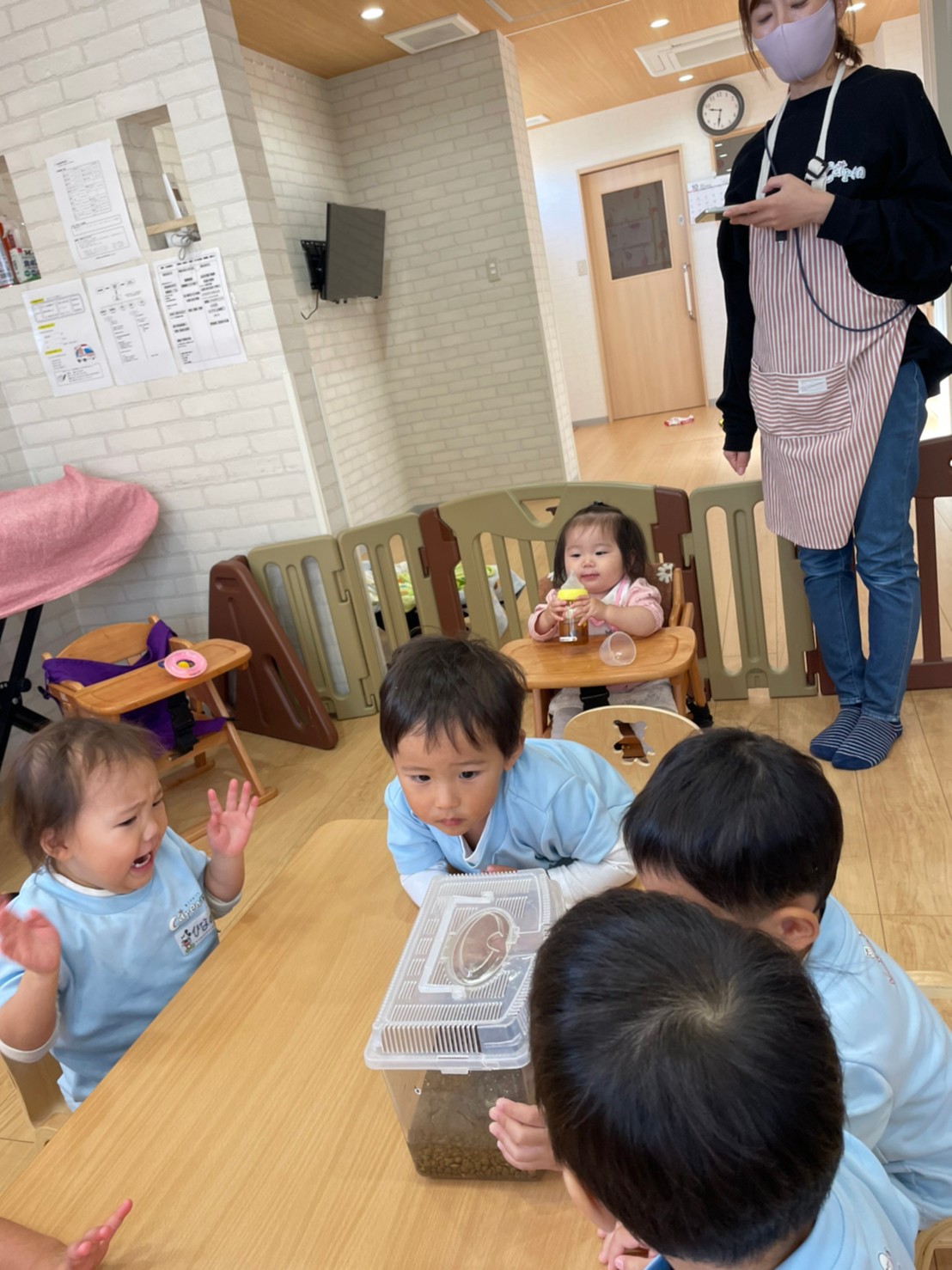 不思議そうに見ている子や、