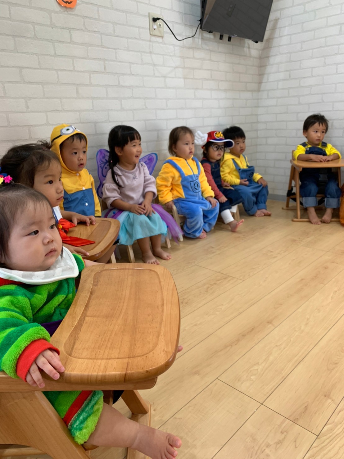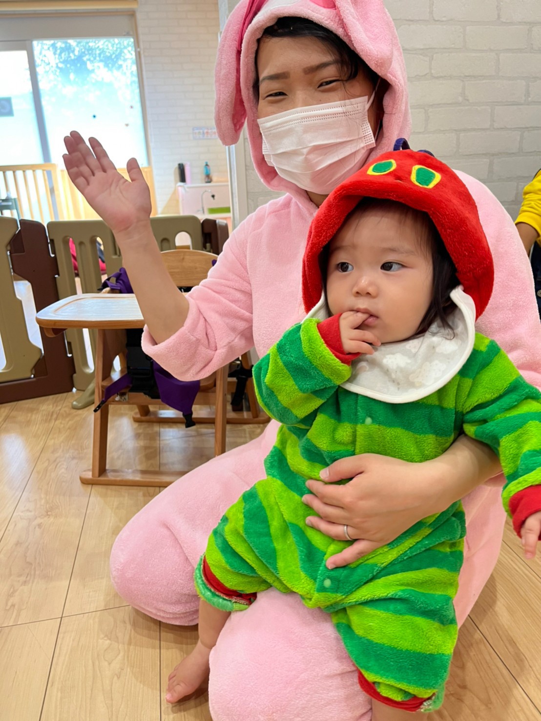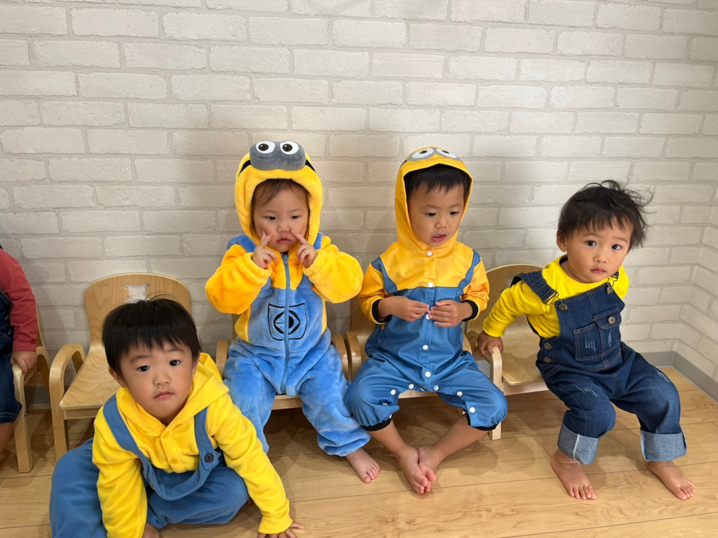 みんな可愛いく仮装をして英語教室の講師の先生と一緒に音楽に合わせて身体を動かしたりして