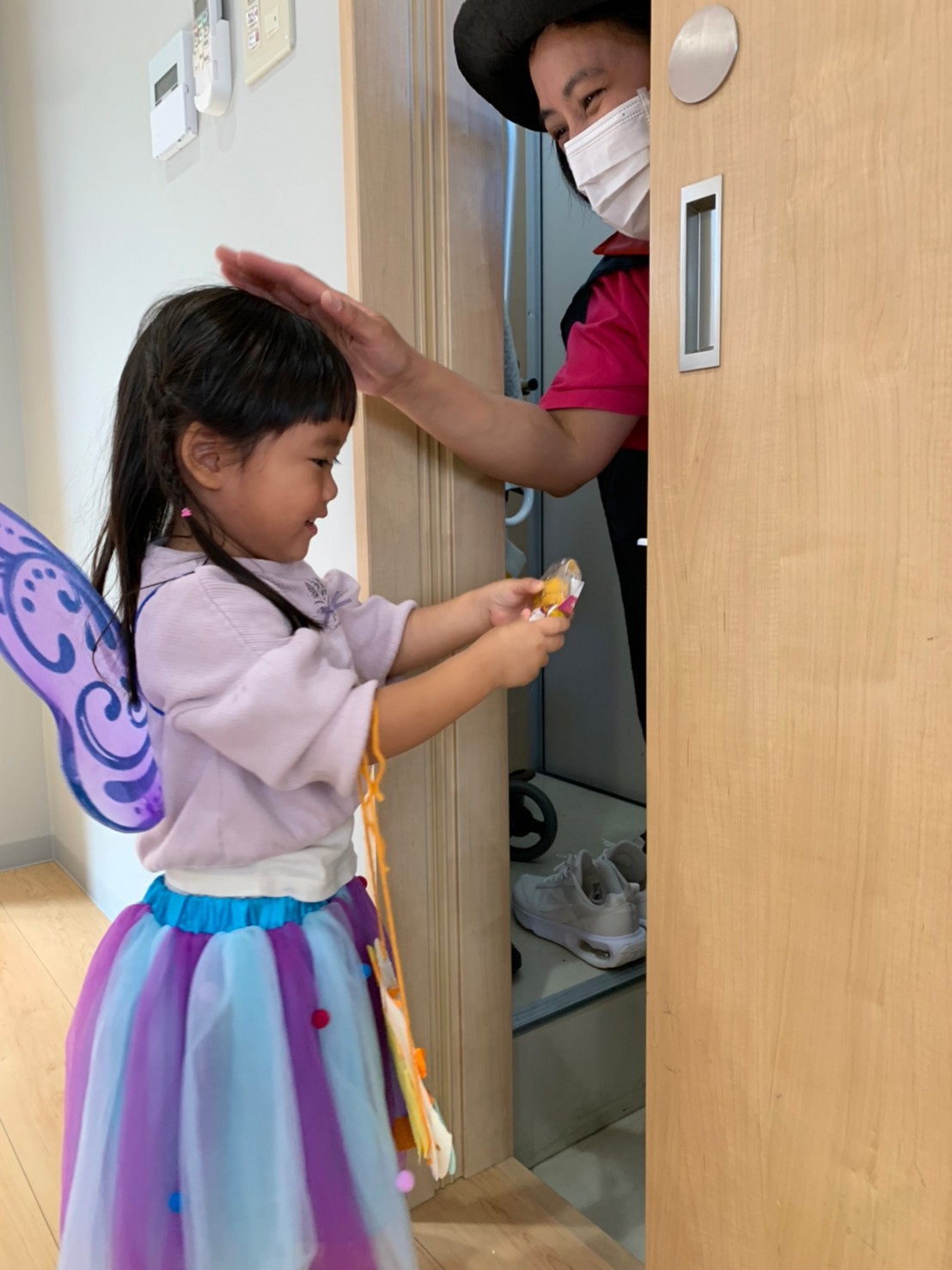お菓子を貰いとても喜んでいましたよ❣️