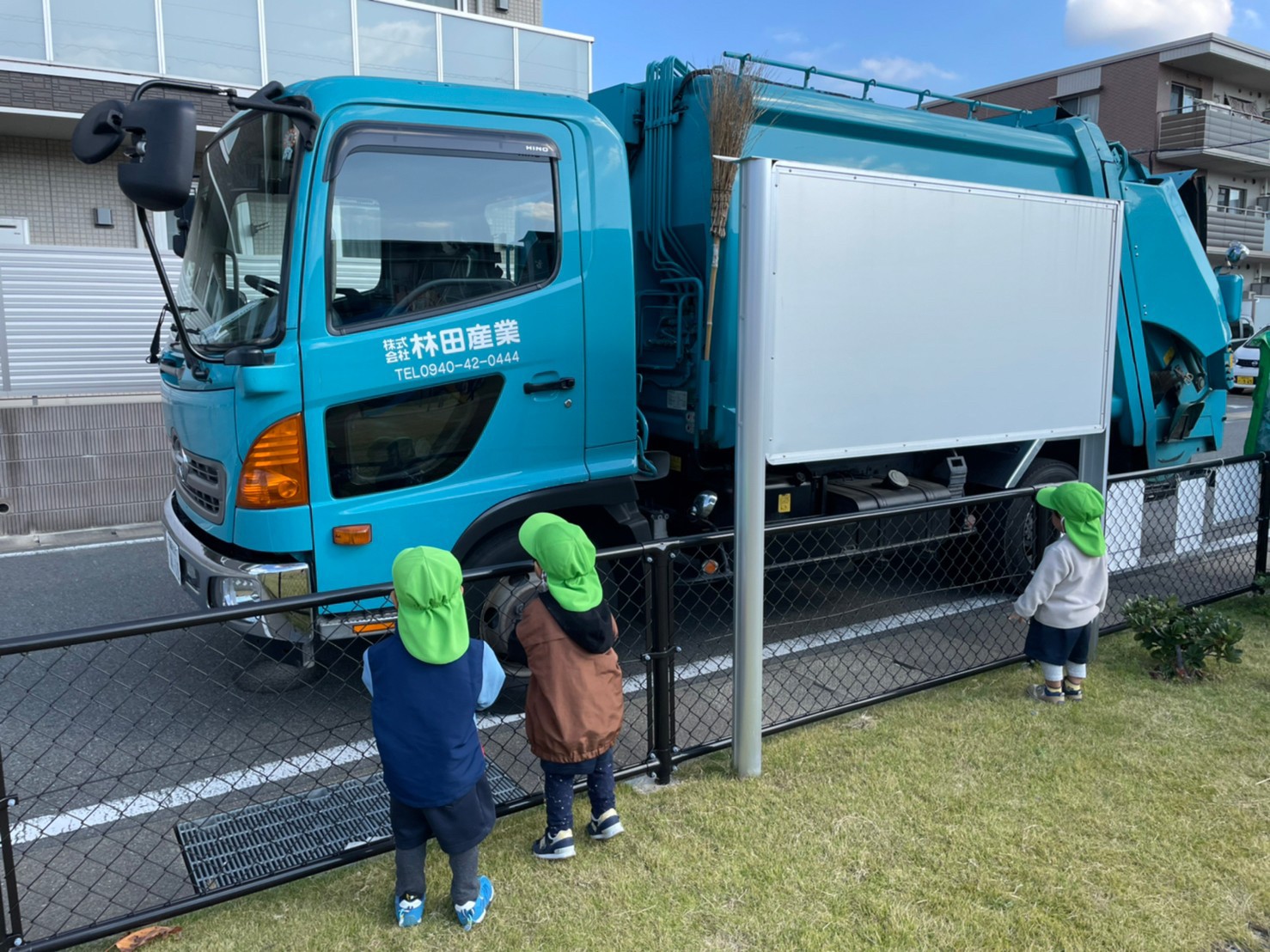 公園に向かっているとゴミ収集車を見つけて手を振ったり大きな音に少しびっくりしながらも