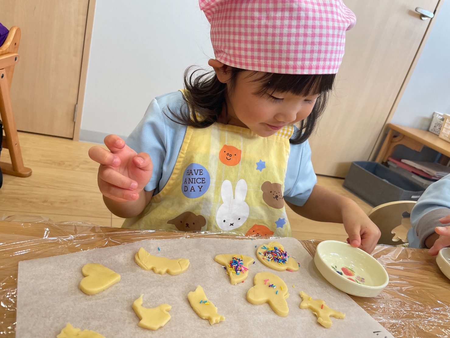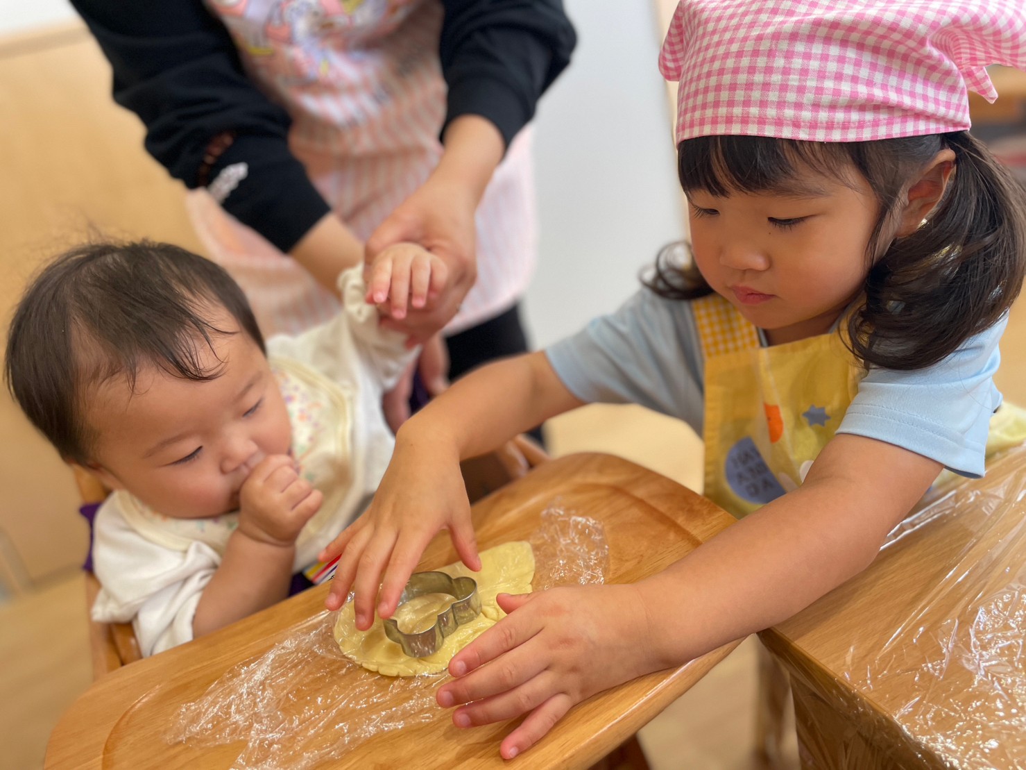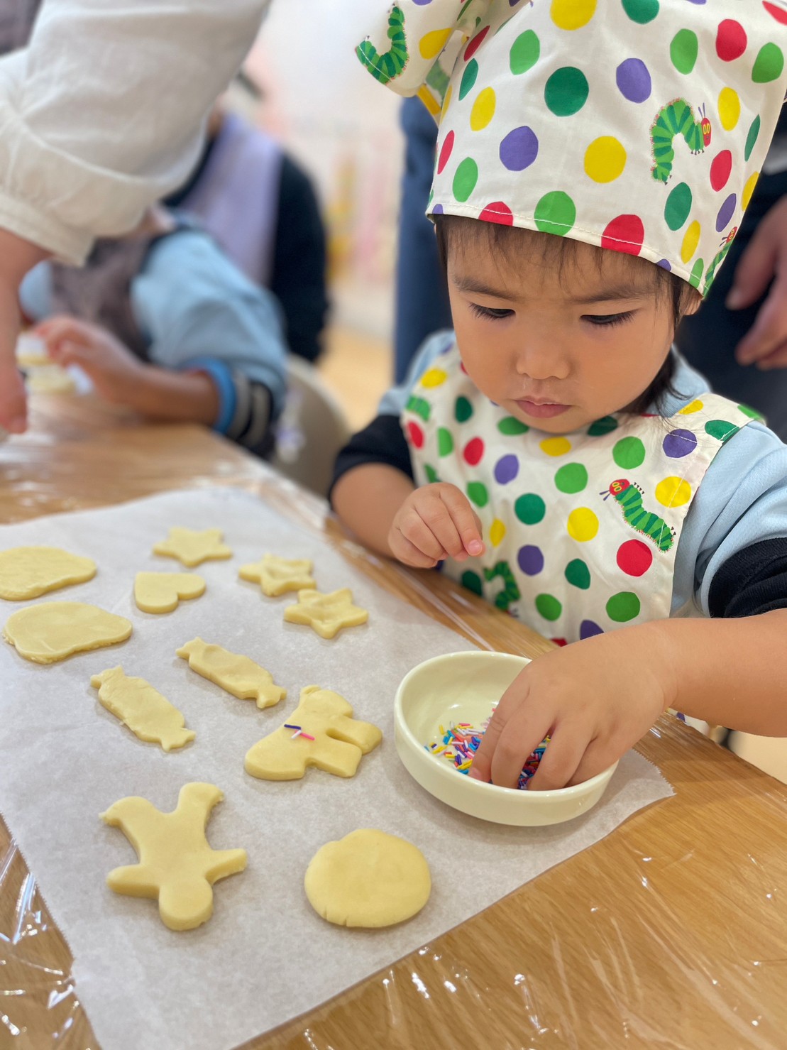 冷たい生地の感触に触れながら『どれにしようかなー☺️』と悩みながら好きな型抜きを選んで、一生懸命に形をつくる子どもたち😊