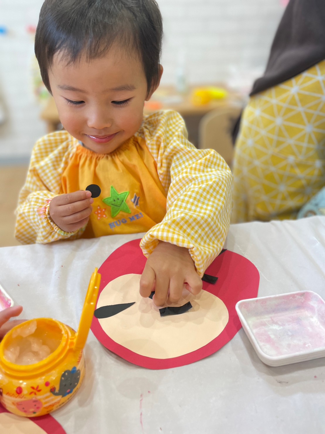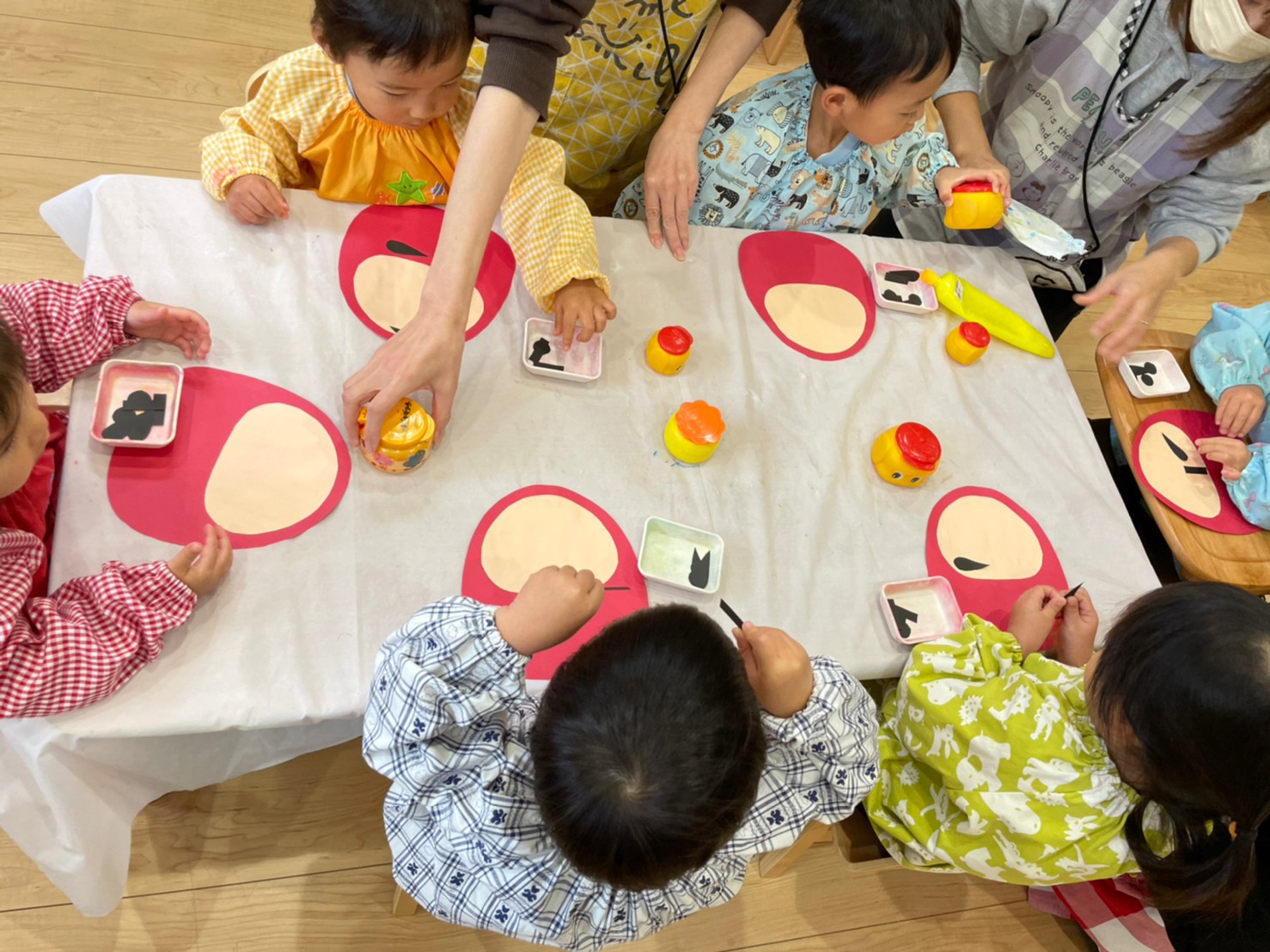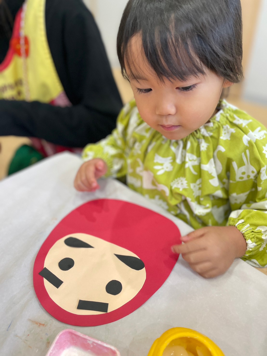 月齢の高いお友だちは、目はどこ?眉毛はここ??などと、パーツの位置を確認しながら貼っていましたよ👏