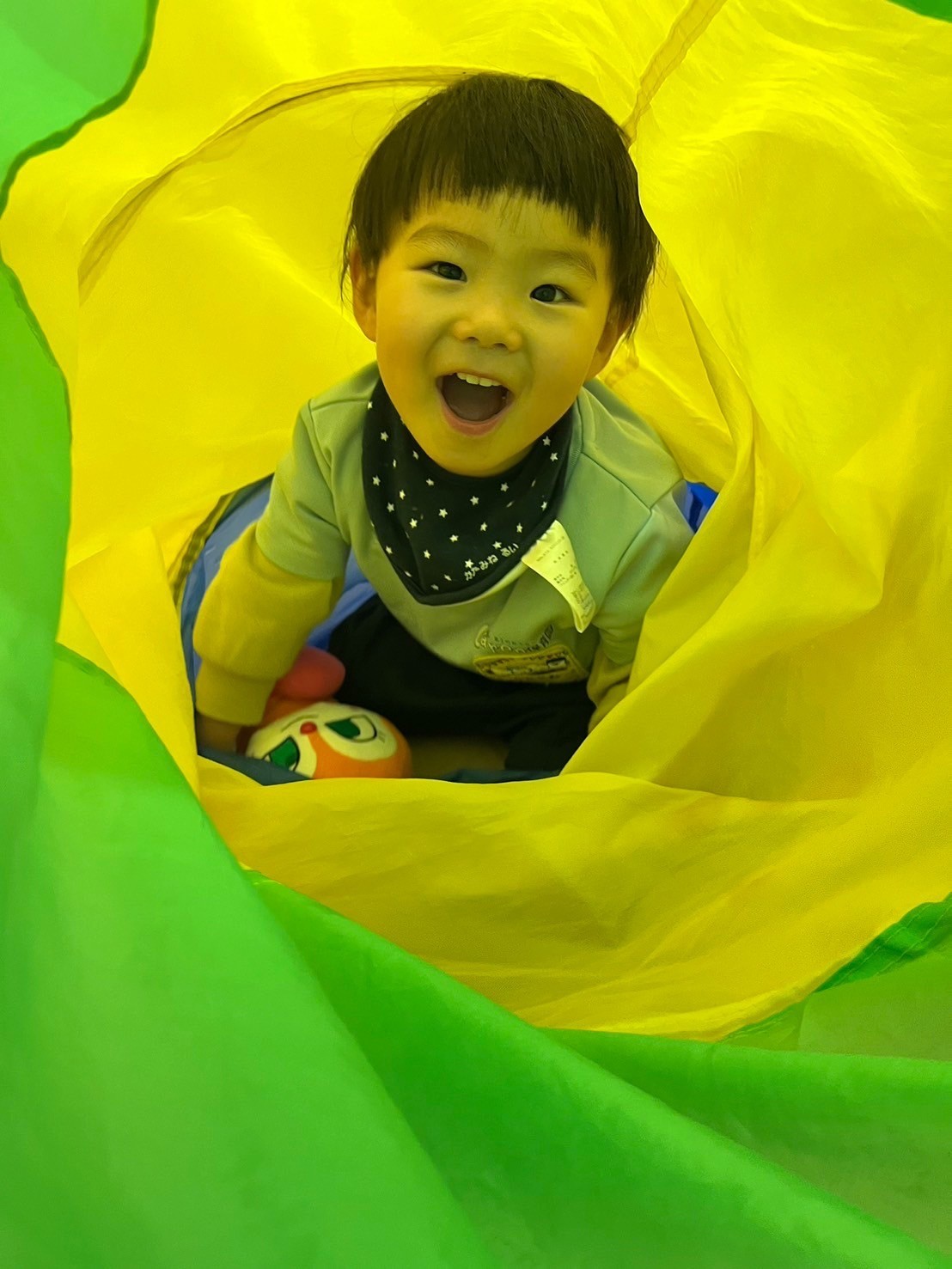 今日はプラネタリウムに行くぱんだ組さんを見送ったひよこ・りす組さんは、お部屋でボールハウスやトンネル、バランス遊具でたくさん体を動かして遊びました🥰