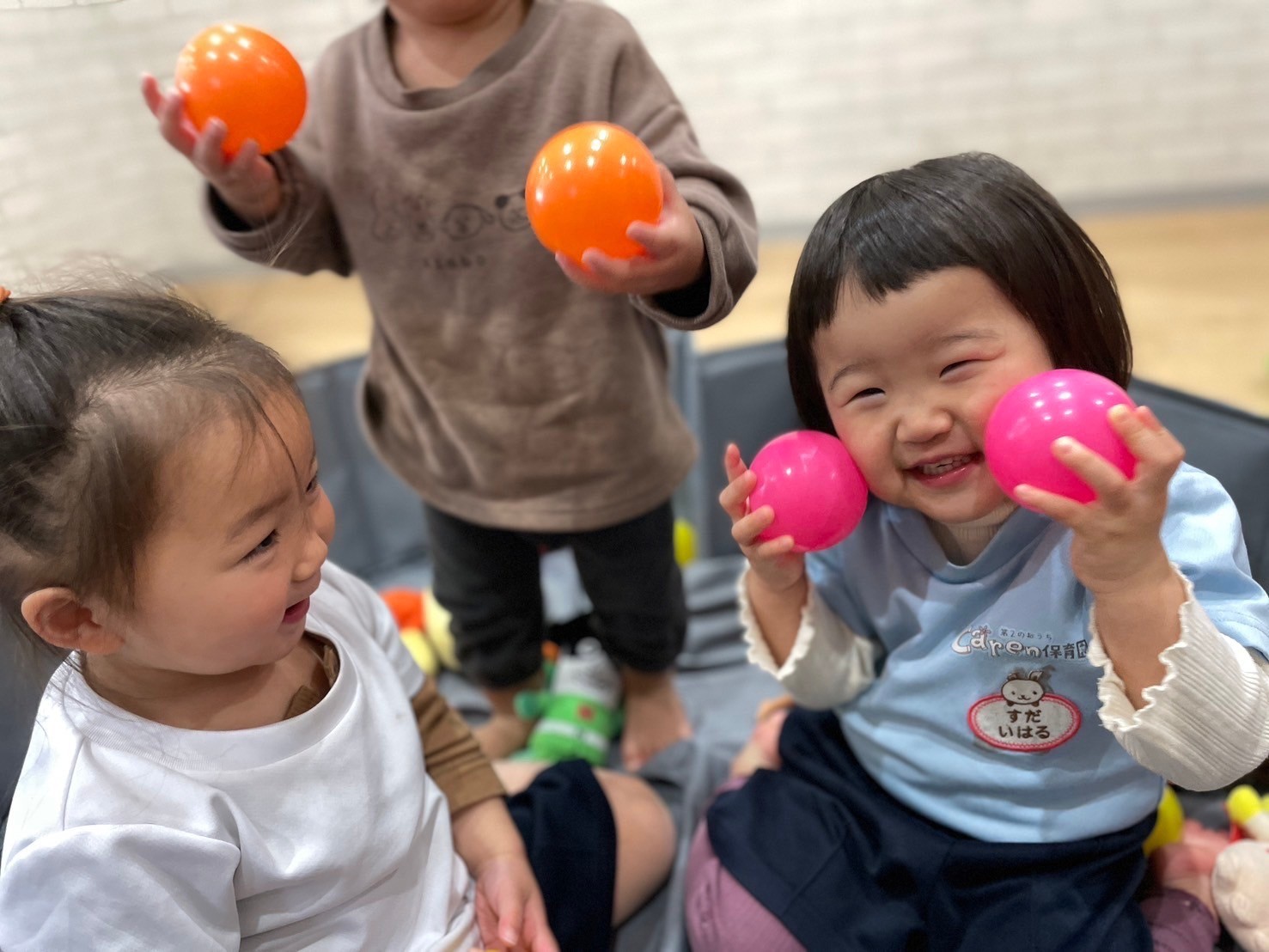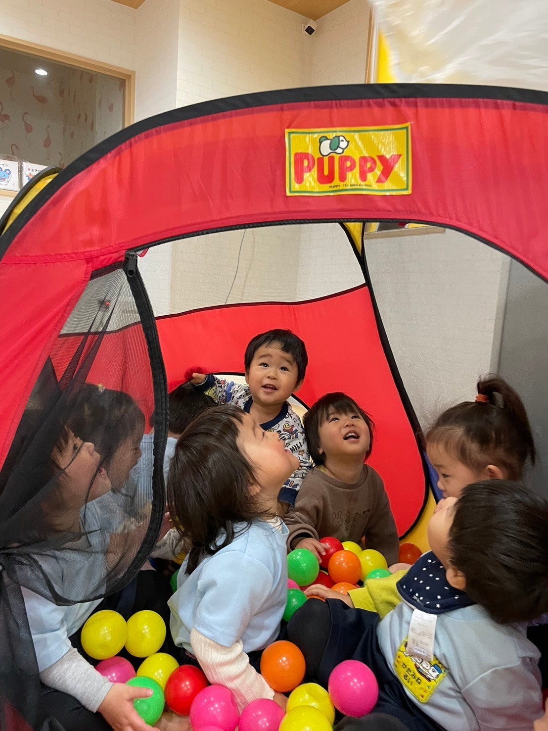 ボールハウスが大人気で今日はみんなでギューギューになりながら、寝転んだり、鬼は外ー!っとボールをたくさん投げて大盛り上がり💕