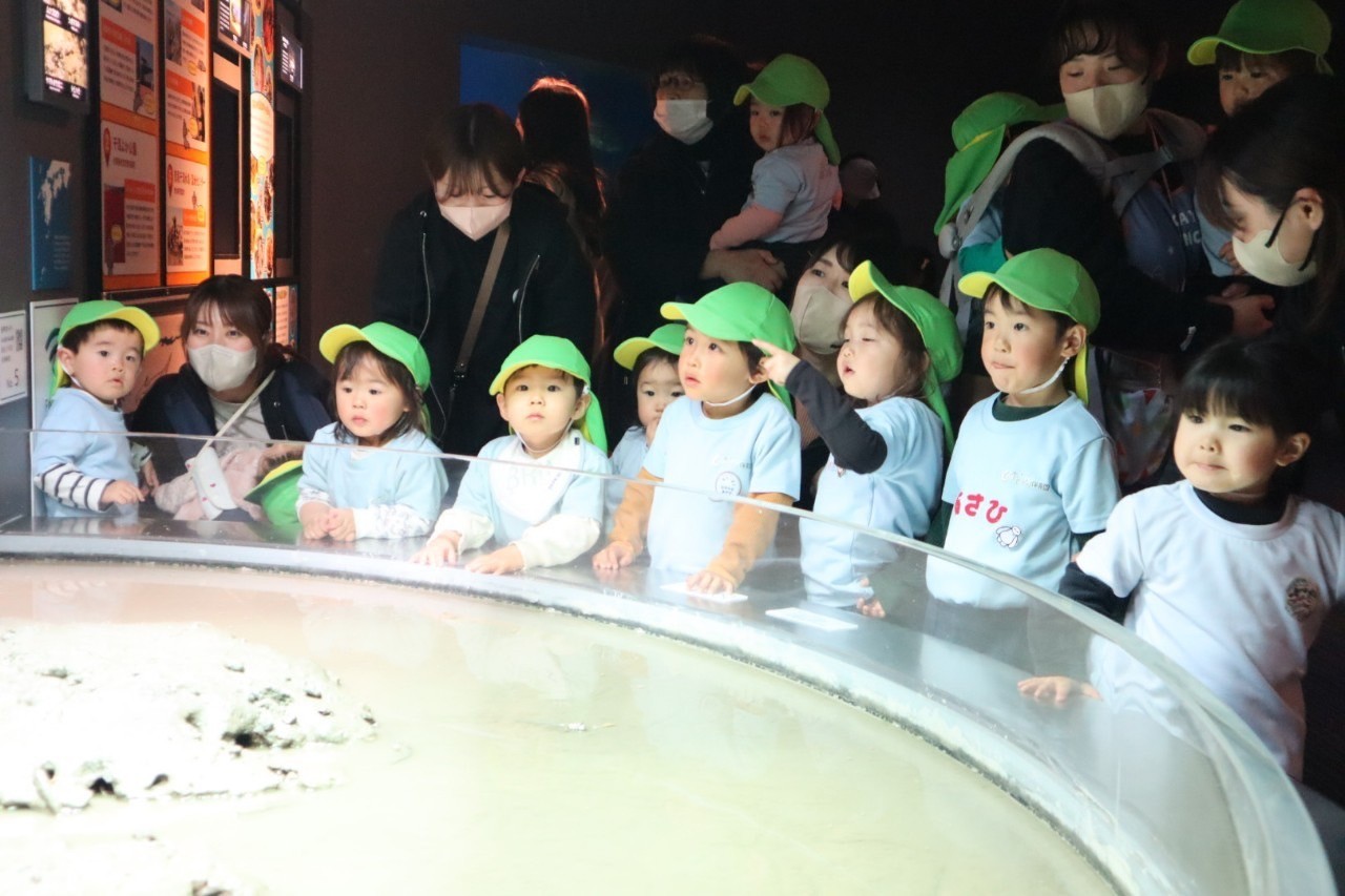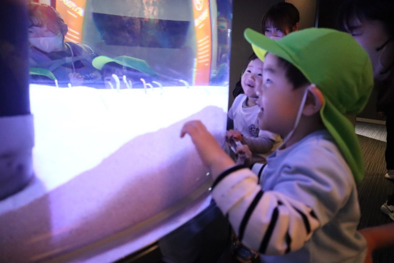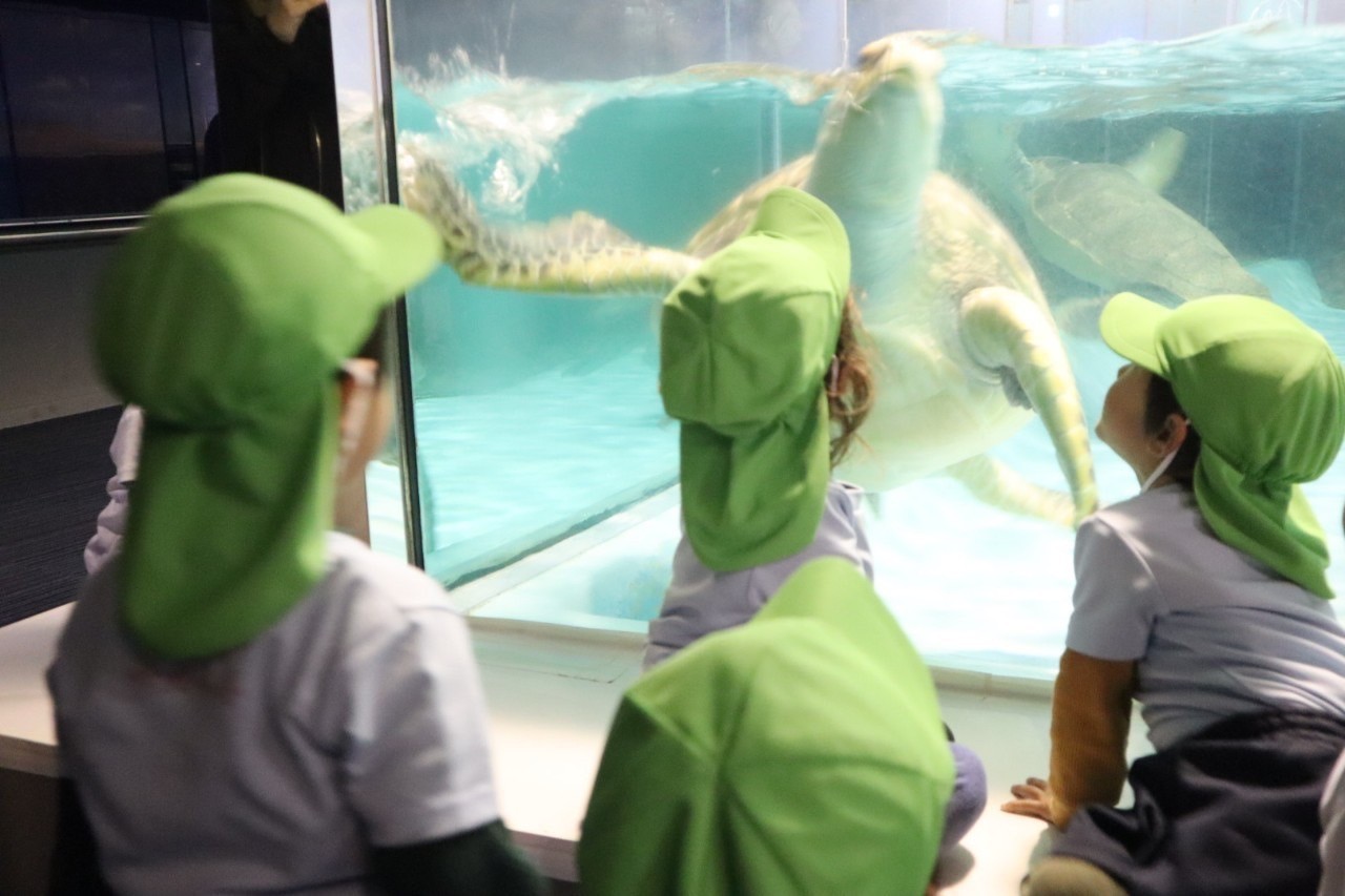 マリンワールドに着くと、薄暗い場所や大きな水槽に圧倒されて、初めはちょっぴり怖がる子もいましたが、慣れてくるといろんな生き物に興味津々で見て回っていましたよ😍
