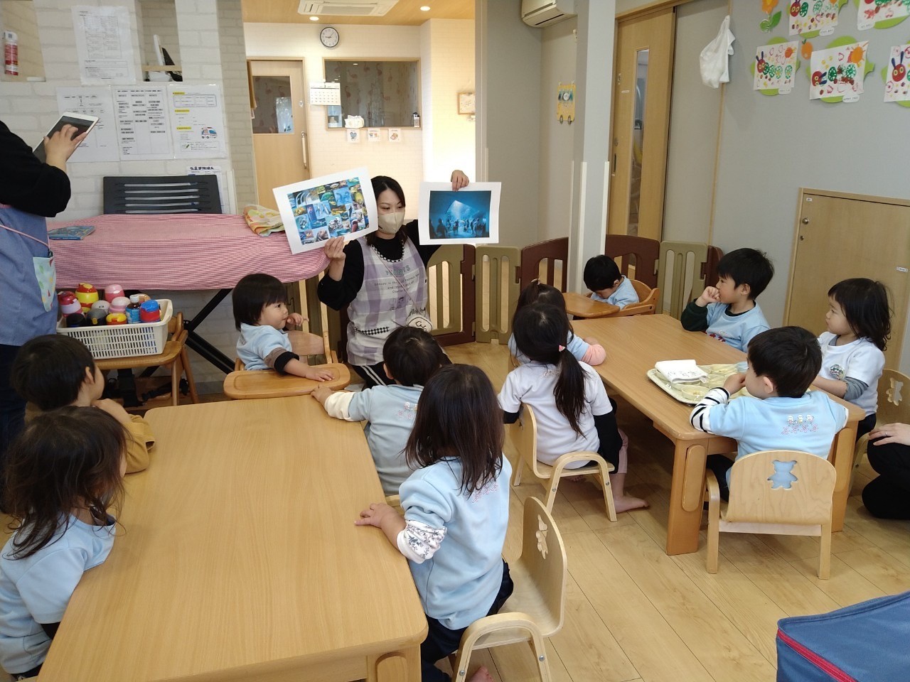 朝の会で、水族館の写真を見て館内でのお約束をお話してから元気に出発‼️✨