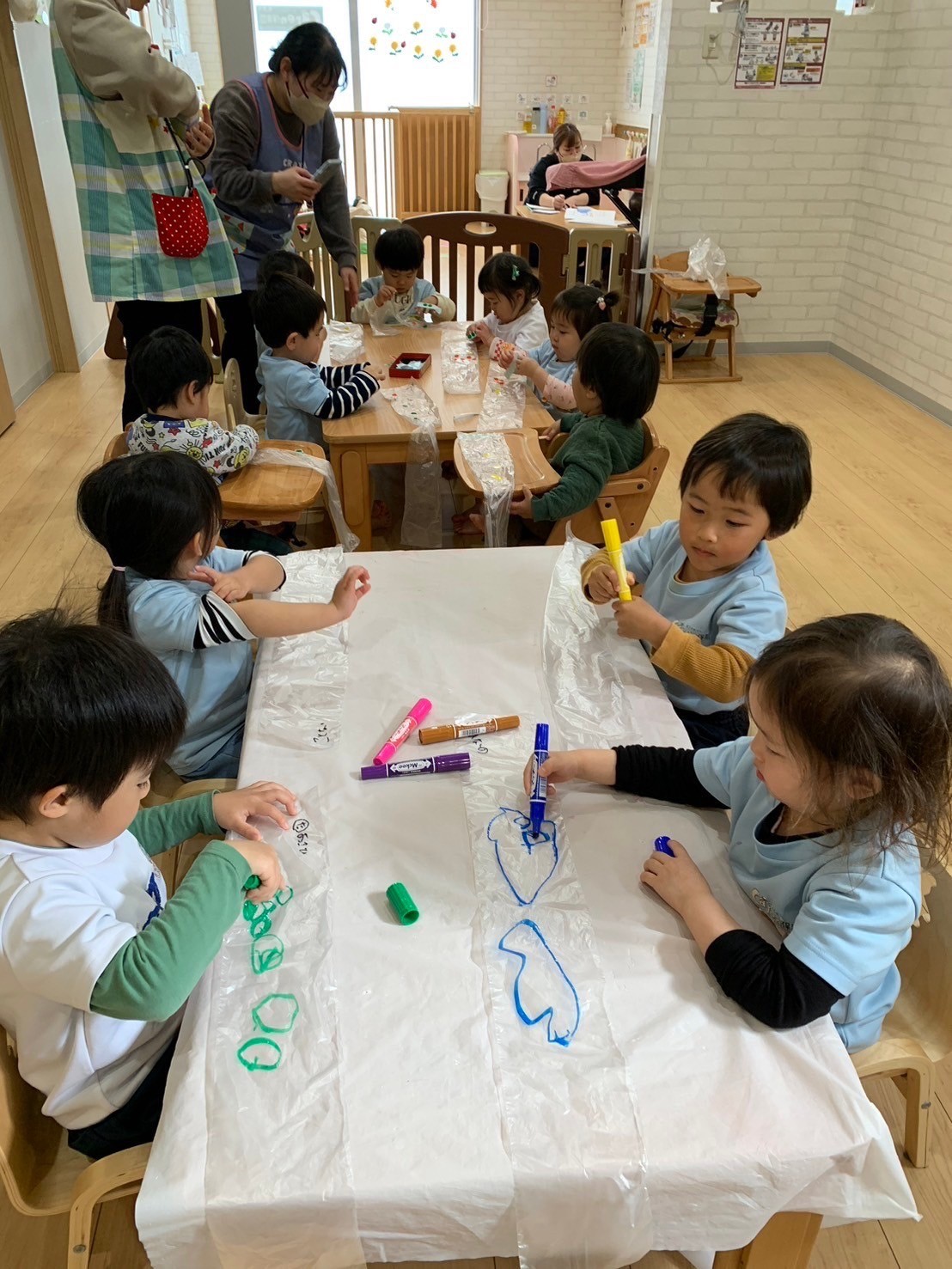 りす、ひよこ組さんはシールをペタペタとたくさん貼りました😆夢中になってシール貼りやお絵描きをするお友だちでした(ハート)