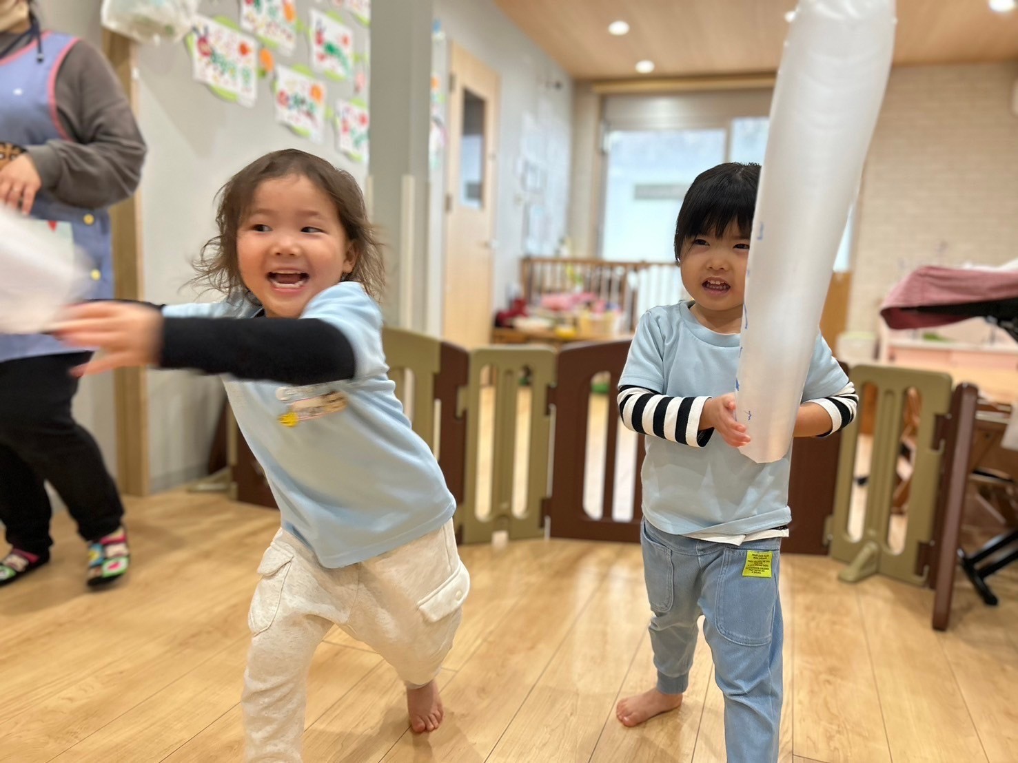 今日は傘袋を使って遊びましたよ😊