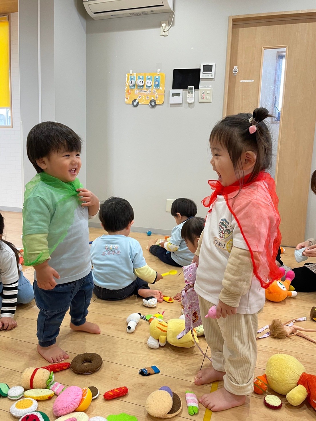 日常生活を再現して遊んでいましたよ🤭💓【福津園の今日の給食です】