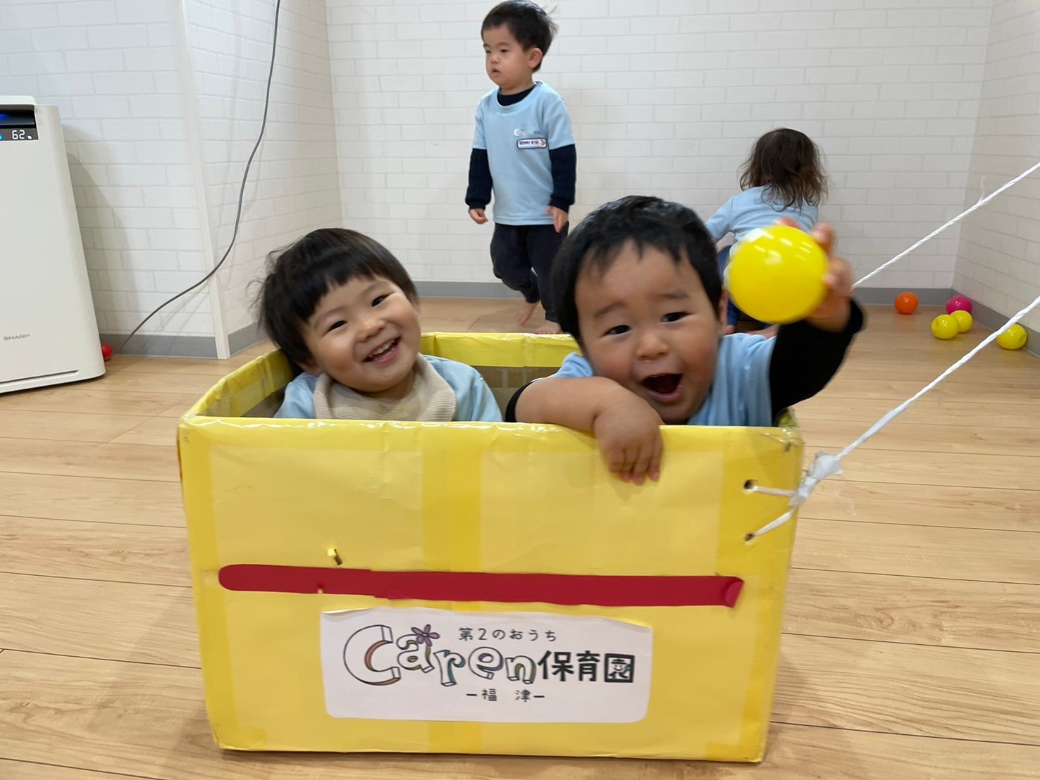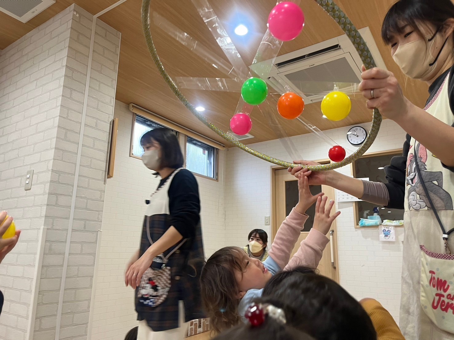 みんなで的に向かってポイッとボールを投げたり持ったままくっつけてみたりと大はしゃぎな子どもたちでした🥳