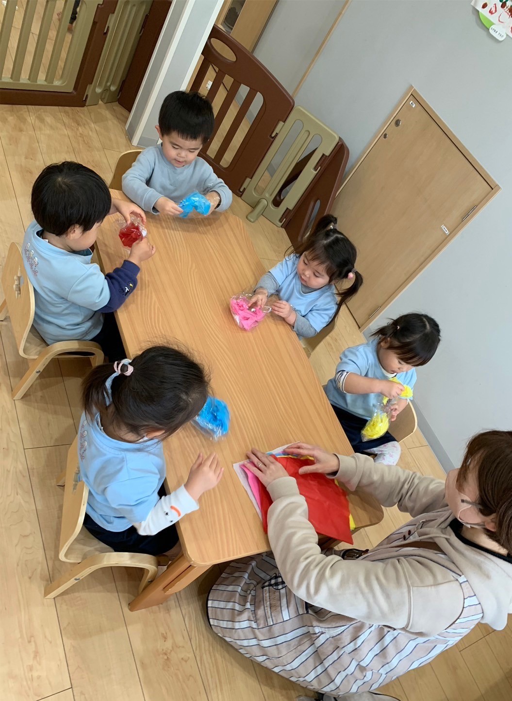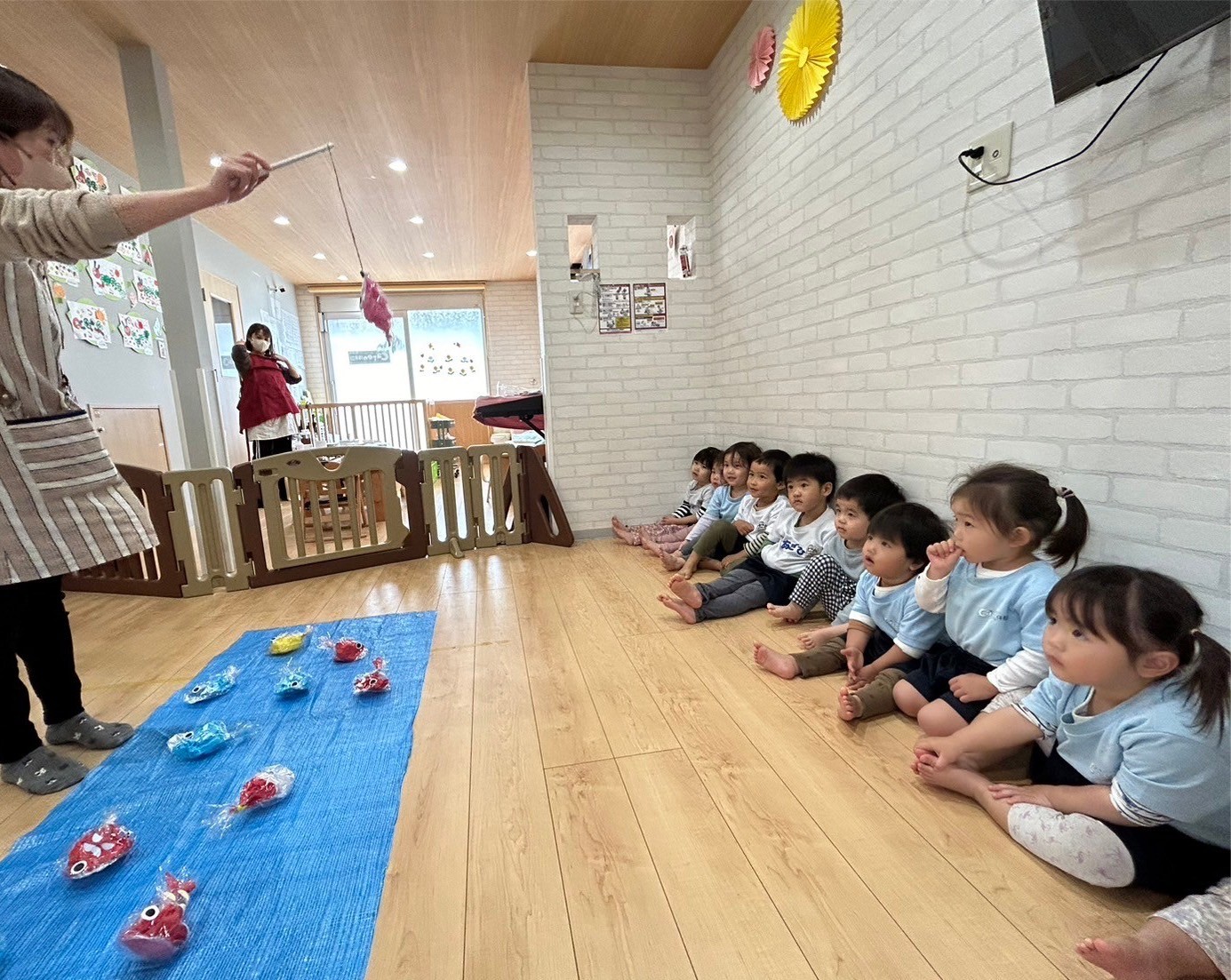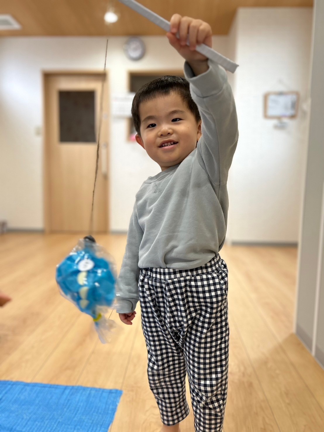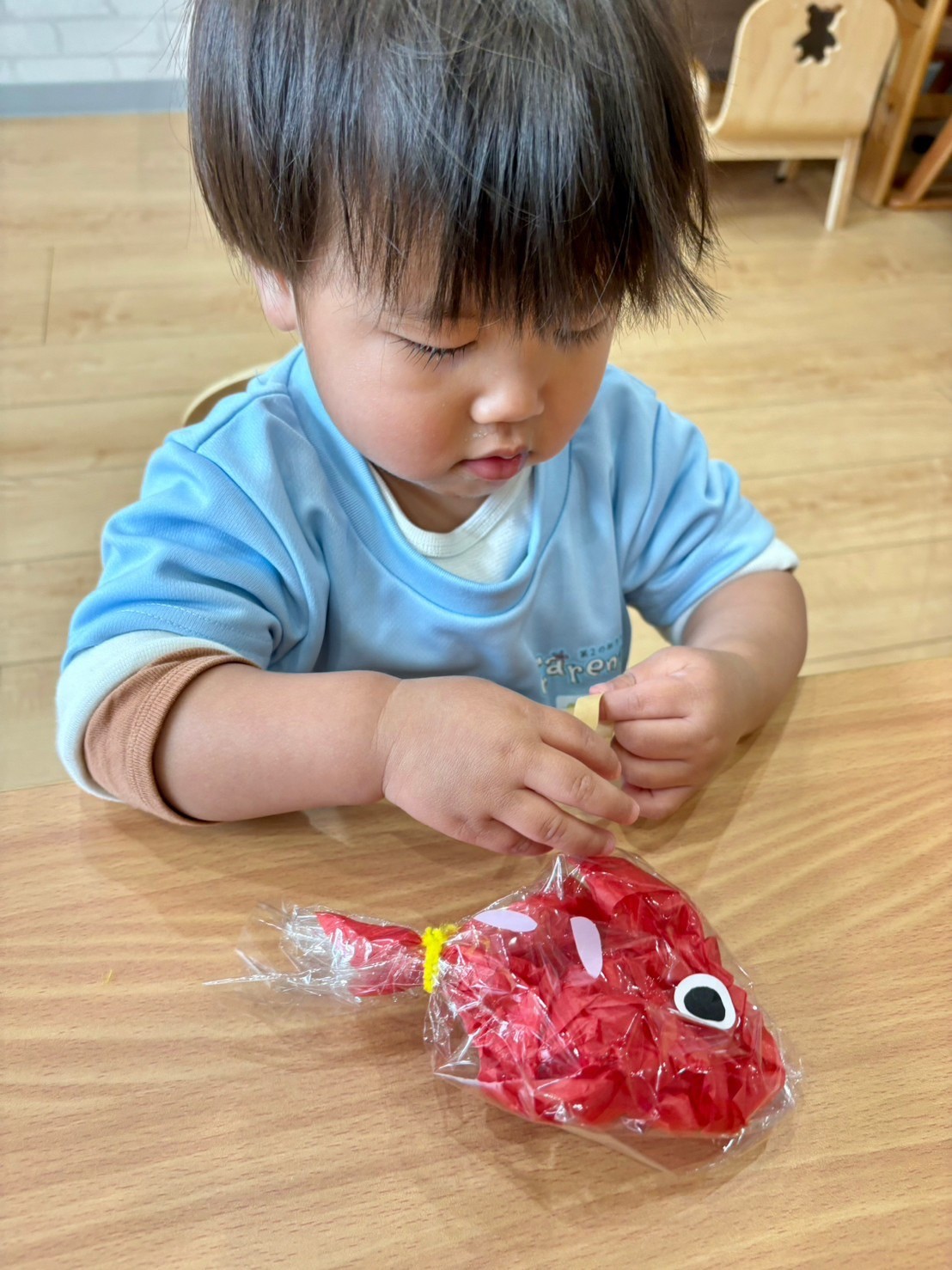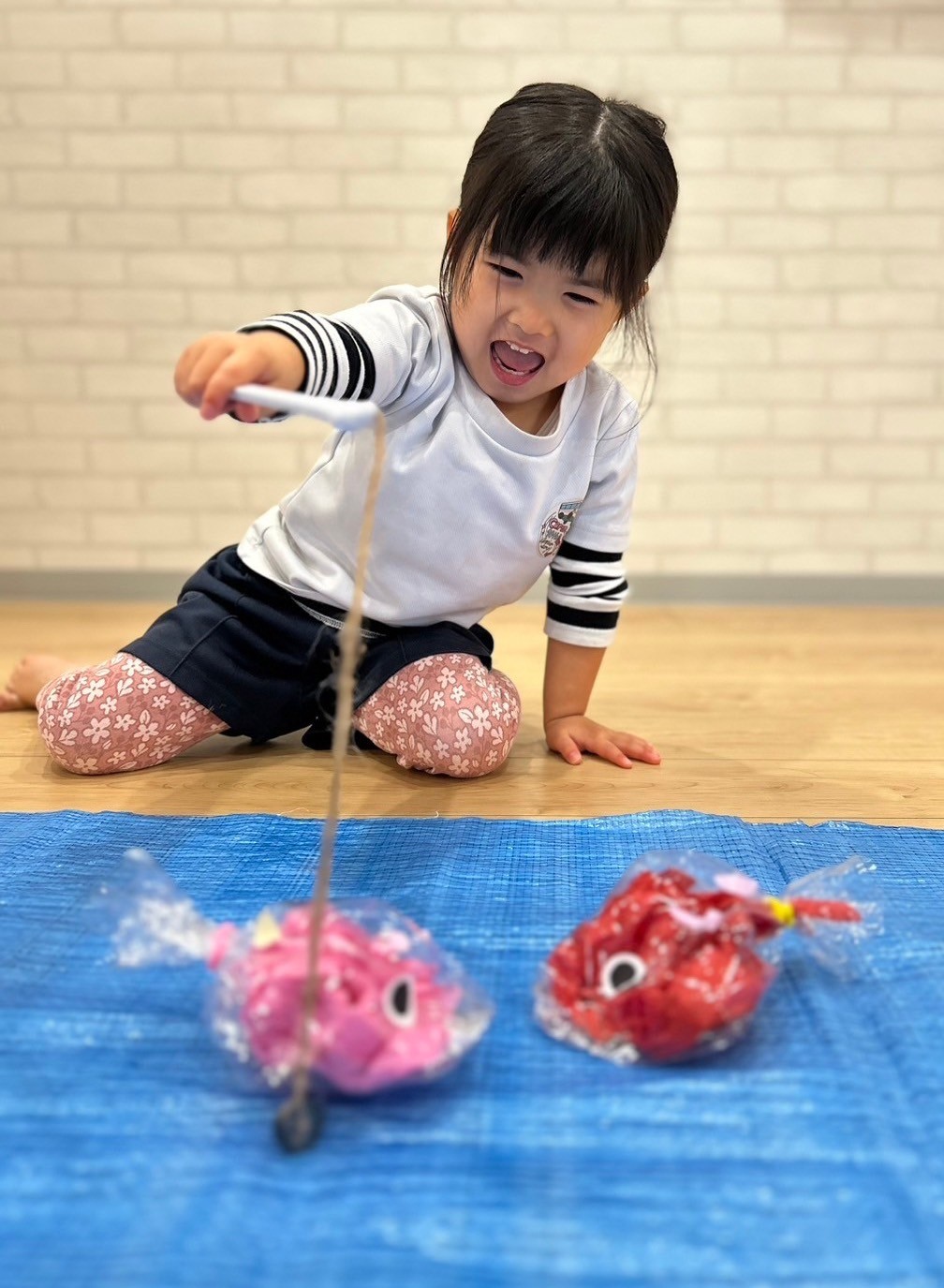 その後は1人ずつお魚を作りました🐟小さなシールの鱗も上手に貼れた子ども達😊出来上がった魚は海に泳がせて魚釣りをしましたよ(釣り)上手く魚が釣れて嬉しそうな子ども達でした🙌