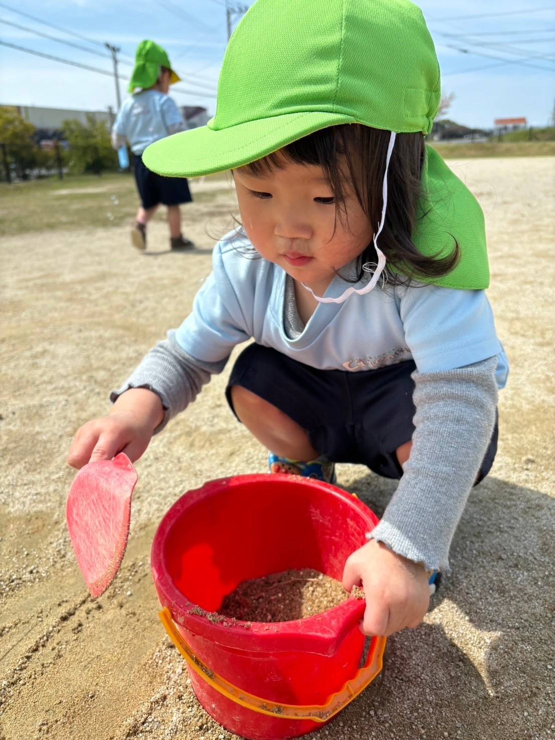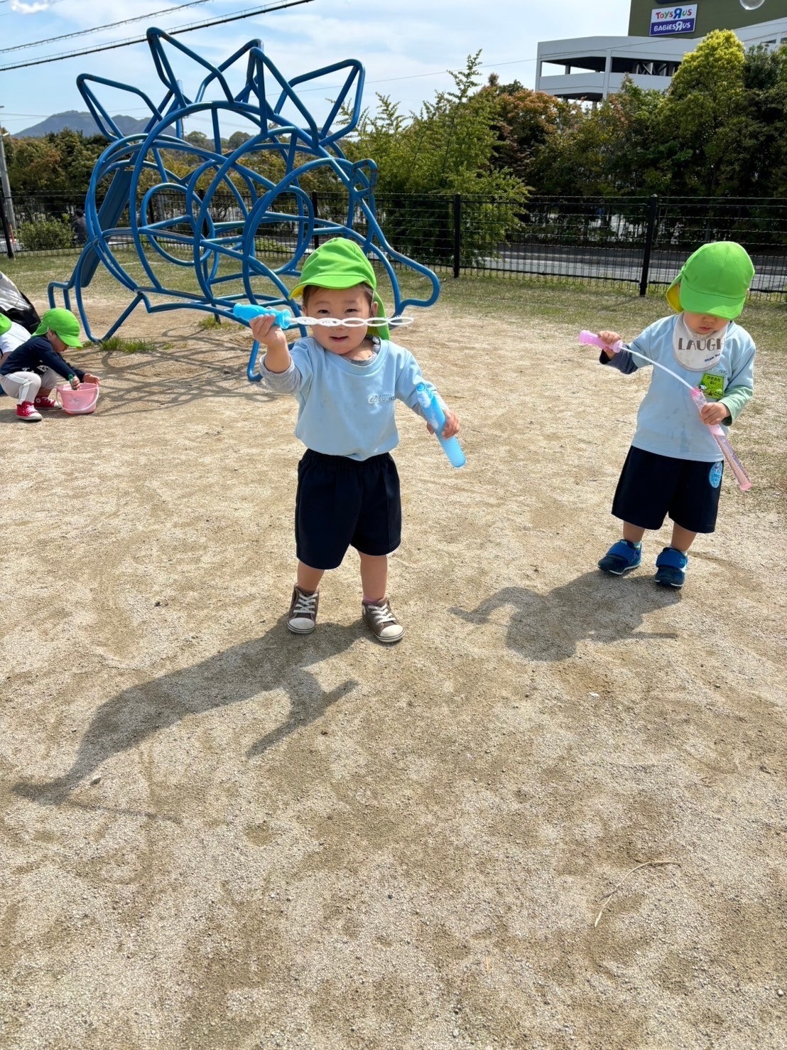 公園では砂遊びやシャボン玉をして🫧蝶々や蟻さんを観察して🐜楽しいお外の時間を過ごしましたよ😊【福津園の今日の給食です】