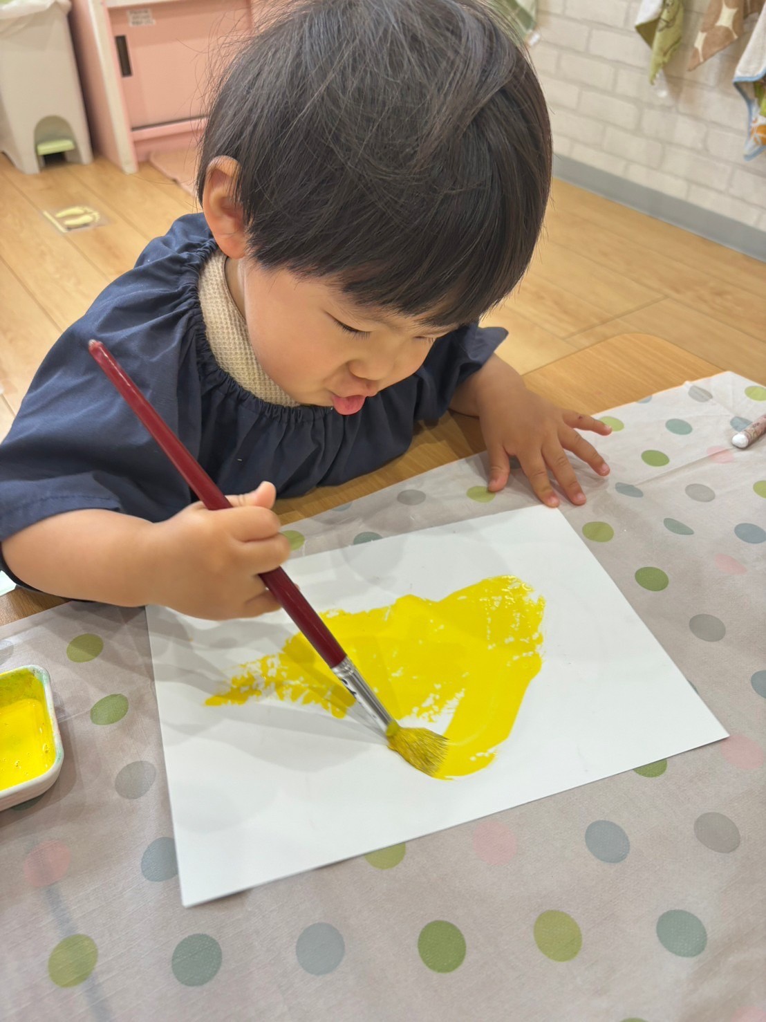 鯉のぼり製作では、自分の好きな色を選びはじき絵をし鯉のぼりに模様をつけました😊