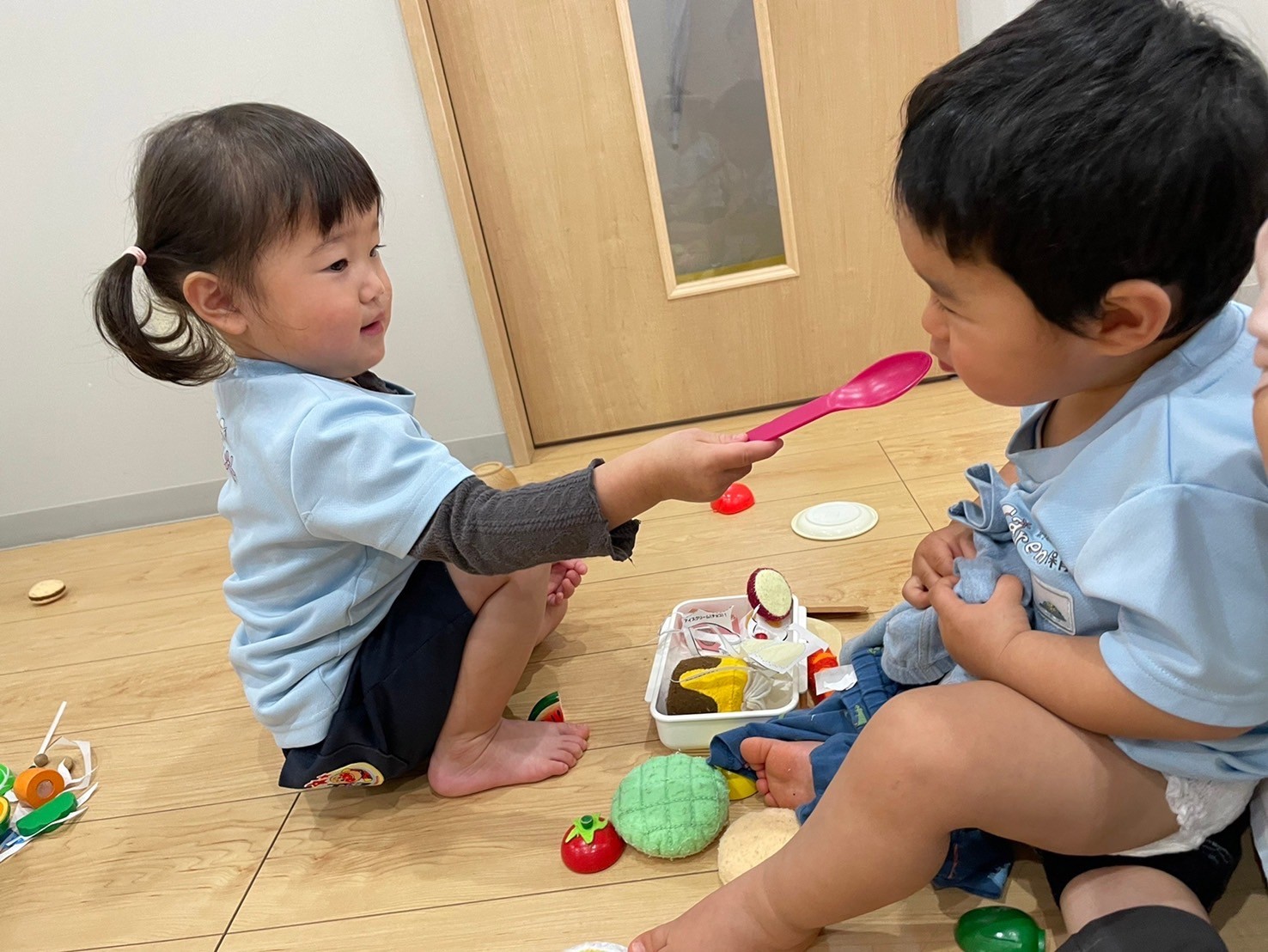 ままごとでは友だちとお店屋さんごっこや、食べさせたり、食べさせたりと楽しんでいました‼️