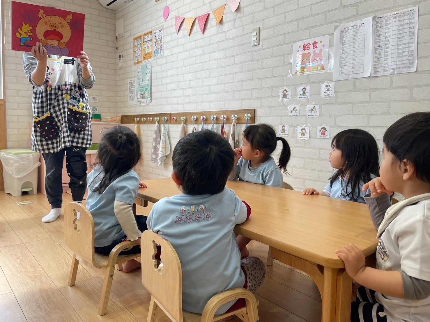 英語教室の後は、火事の避難訓練をしました🚒🔥「お・か・し・も」のお約束の紙芝居でしっかりお勉強をしていざ訓練へ🔥火災報知器の音にびっくりして泣きだすお友だちもいましたが無事避難することができました✨