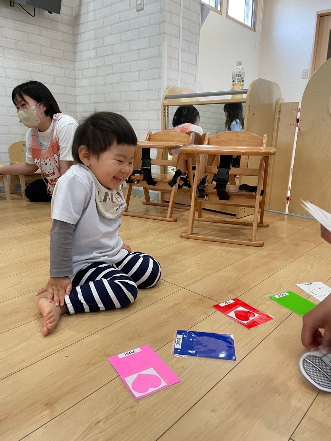 練習した後、ハートのカードと同じ色を探すゲームをしました🧡❤️💛💚みんな同じ色を探すことに成功しました🥰