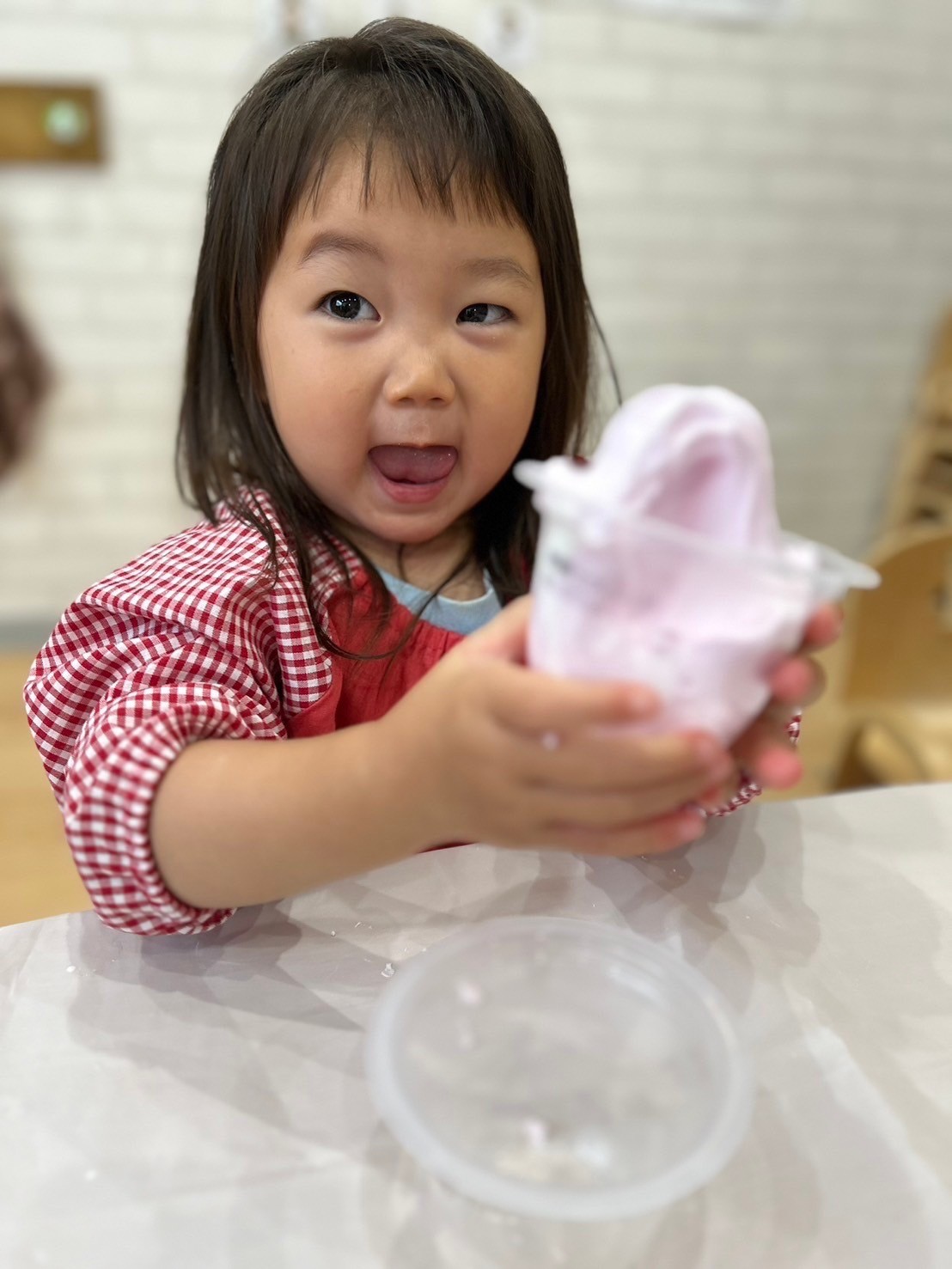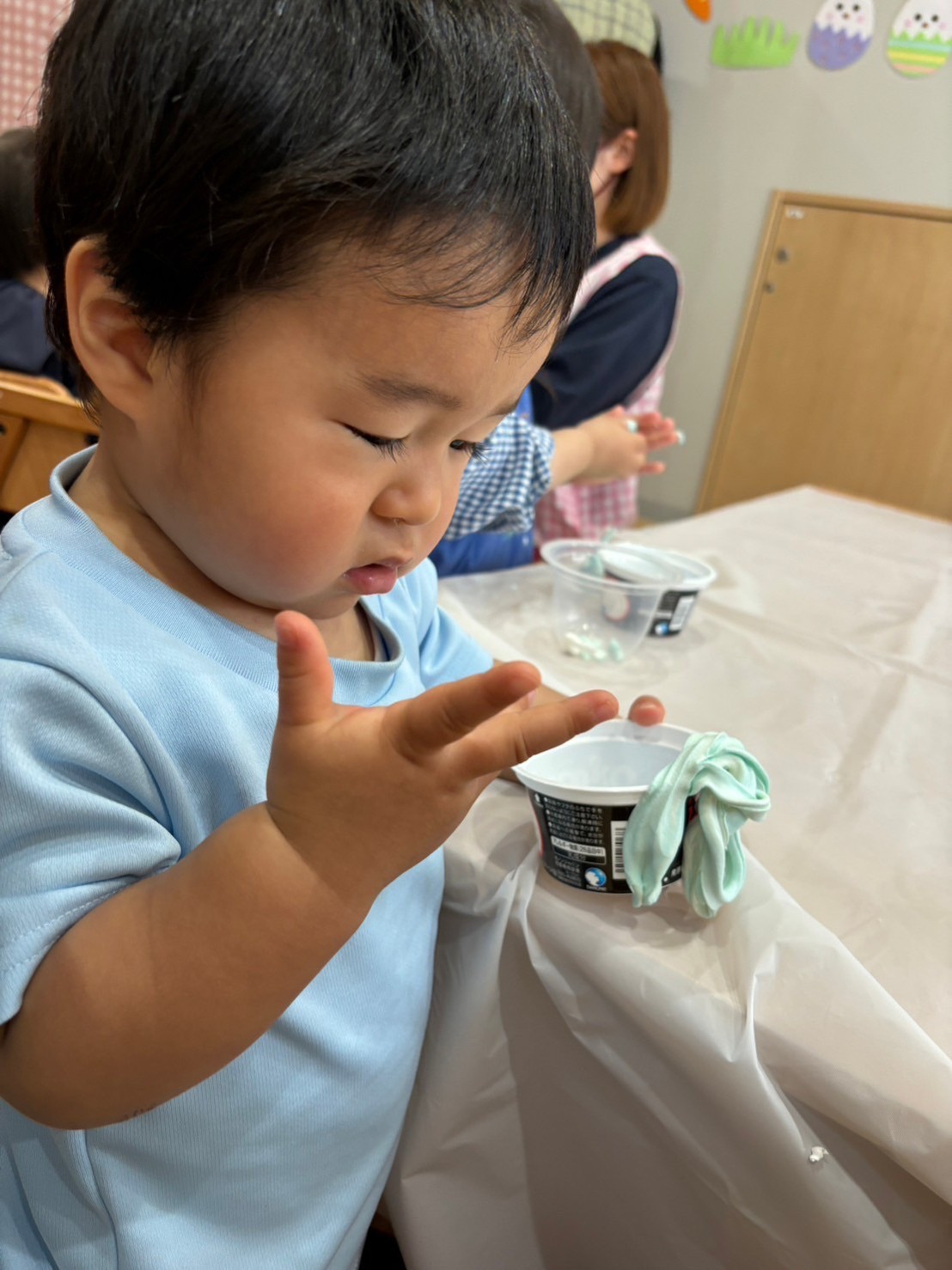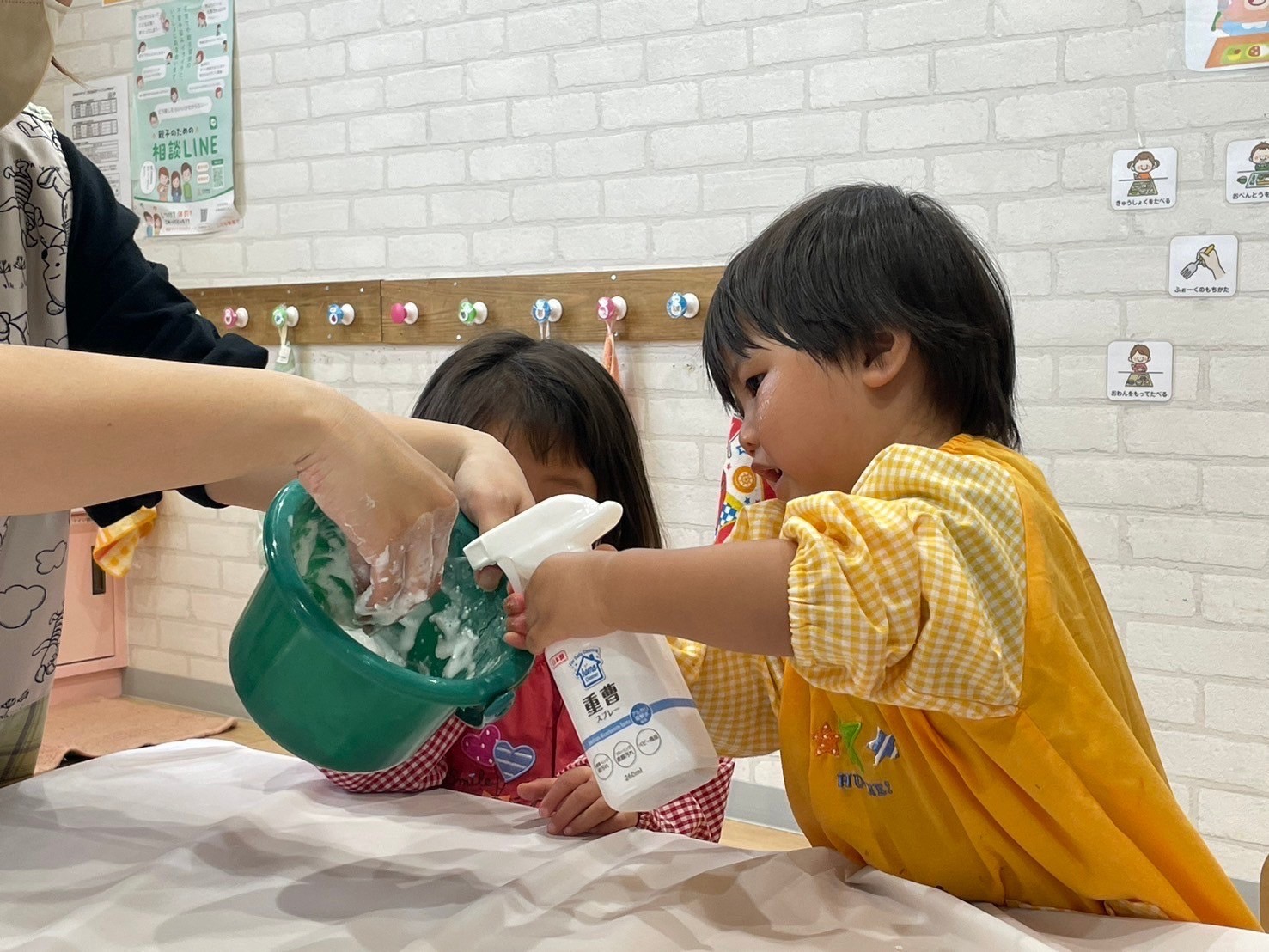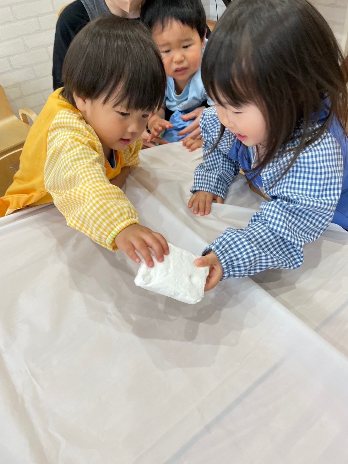 いつも使っている油粘土と違いふわふわの粘土に興味津々の子ども達💓