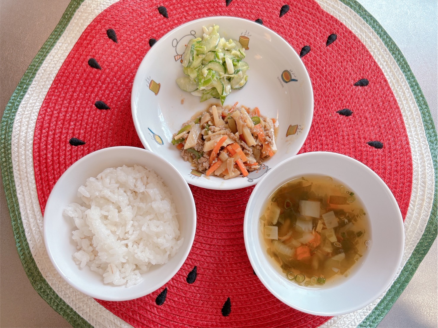 ままごとチームは、お弁当を作ったりフライパンで料理をしたりしてました🍳✨【福津園の今日の給食です】