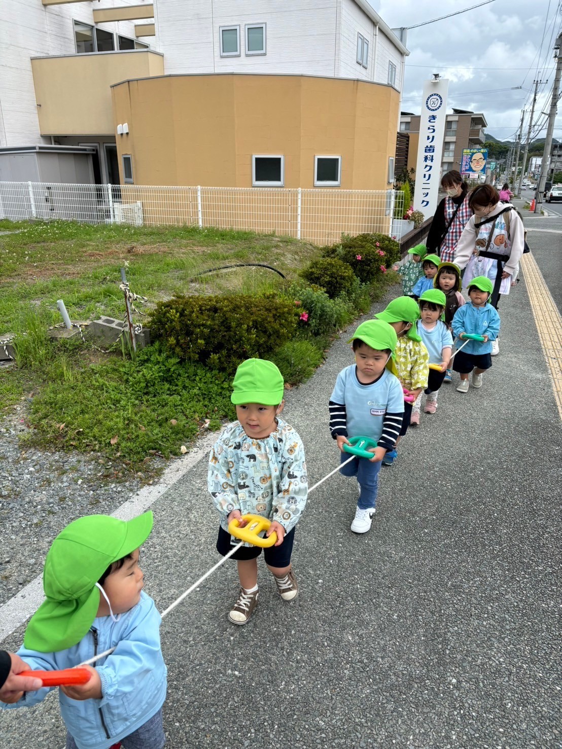 その後は、誘導ロープと手繋ぎで皆んなで歩いてお散歩に出かけました😊初めて歩いたお友だちもいましたが、みんな上手にたくさん歩いて楽しいお散歩になりました❣️【福津園の今日の給食です】