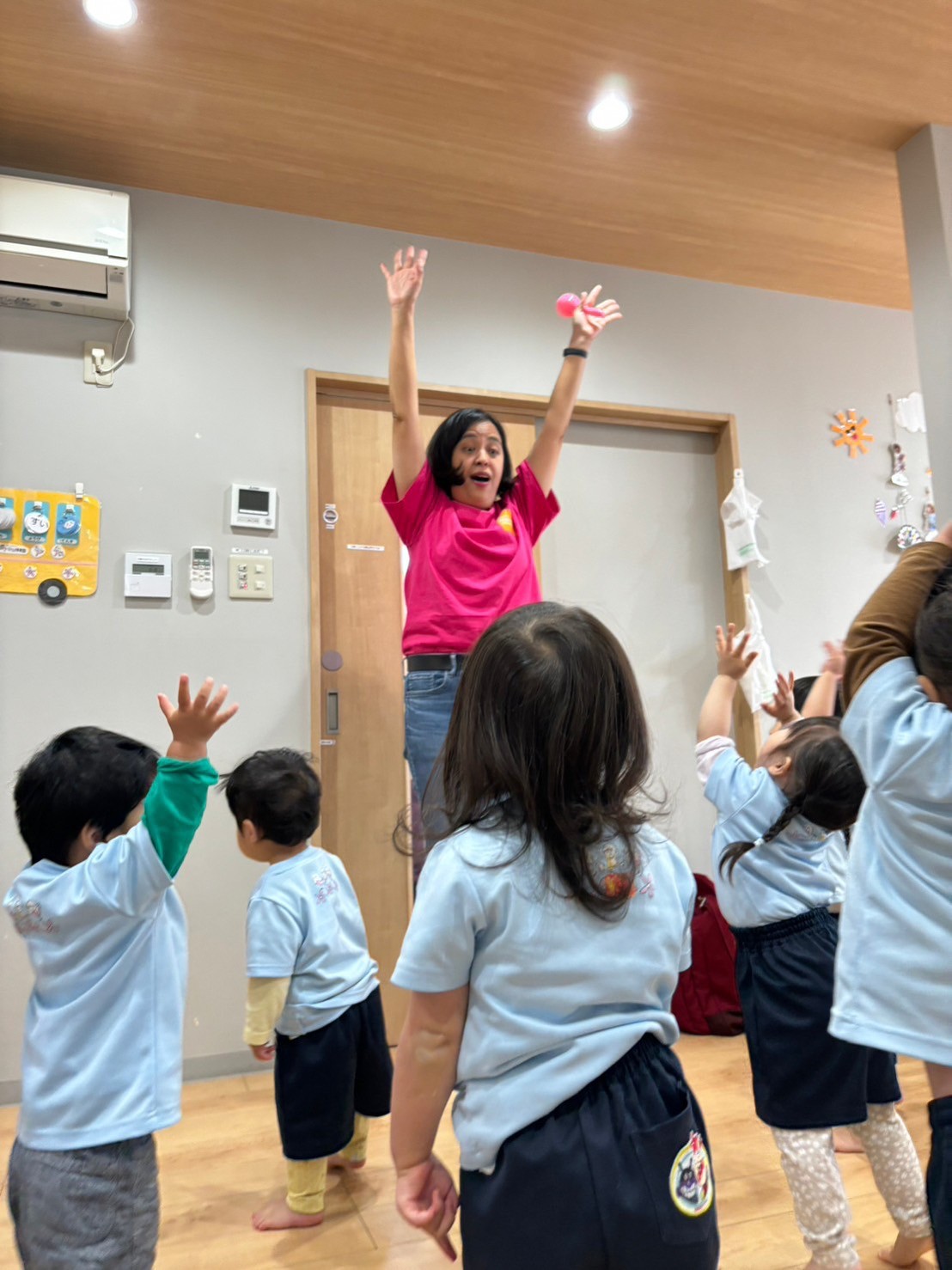 今日は、朝の会で遠足のレクリエーションの練習をしました!おとな公園やバスごっこの音楽に合わせて、保育者とのふれあい遊びを楽しんでいた子ども達⭐️笑顔と楽しそうな笑い声に溢れていて、遠足当日も親子で楽しい時間を過ごせたらと楽しみになりました😊💓