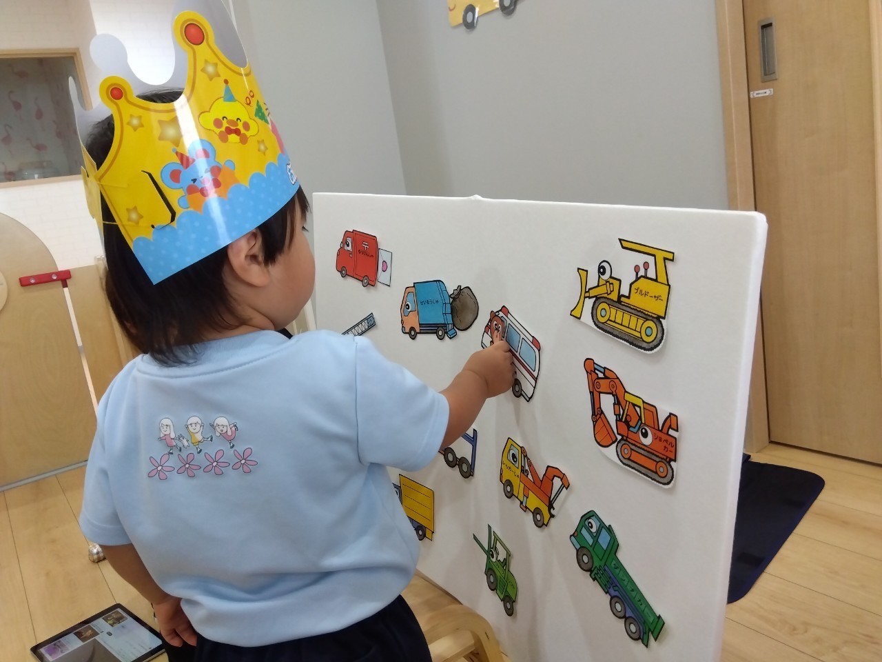 誕生日会🎂では、「働くくるま🚗」のペープサートをしました!