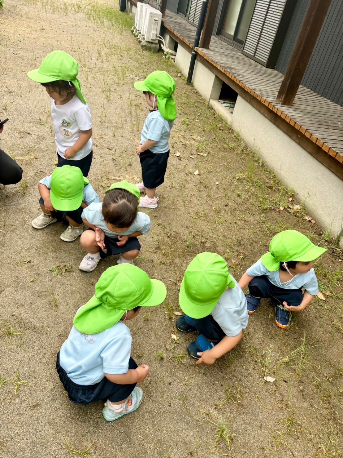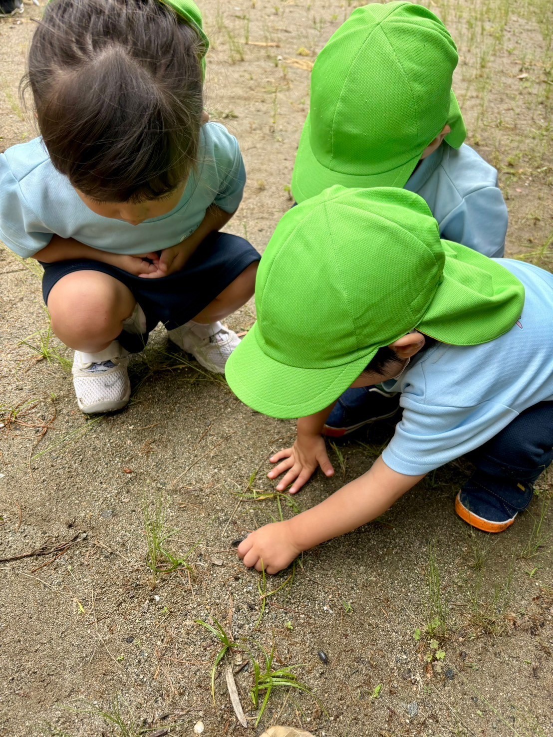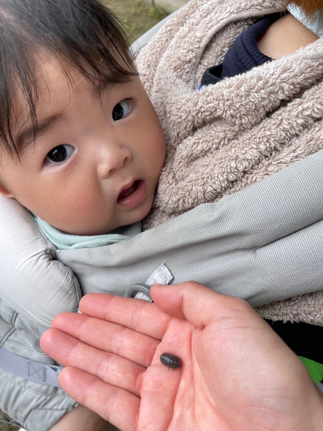 ナメクジ、アリ、小さな赤ちゃんバッタに出会い、広場を駆け回って探索を楽しみました🤗
