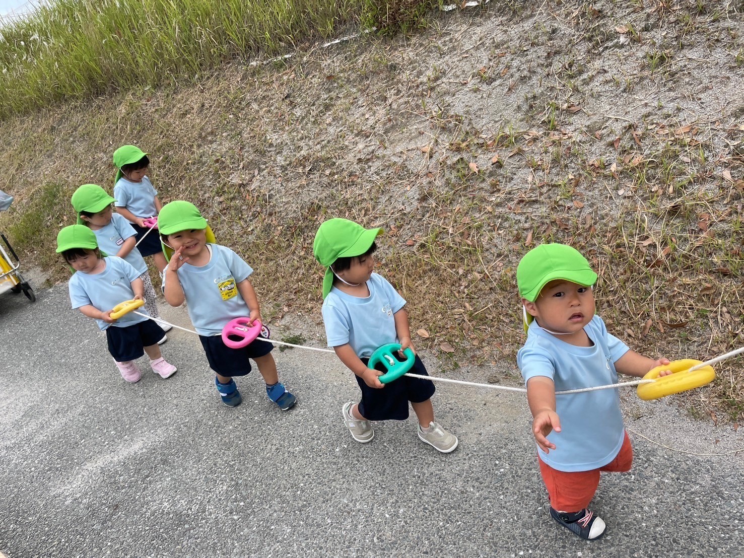 砂遊び🪣や滑り台🛝を何度も滑ったり、赤い小さな木の実もたくさん見つけてお外遊びを満喫しました🤗♪帰りは、ぱんだ🐼組さんはお友達と手を繋いで「虫🐜さんいないかなー?」「あ!ちょうちょ🦋」と会話を楽しみながら帰って来ましたよ😆🎶