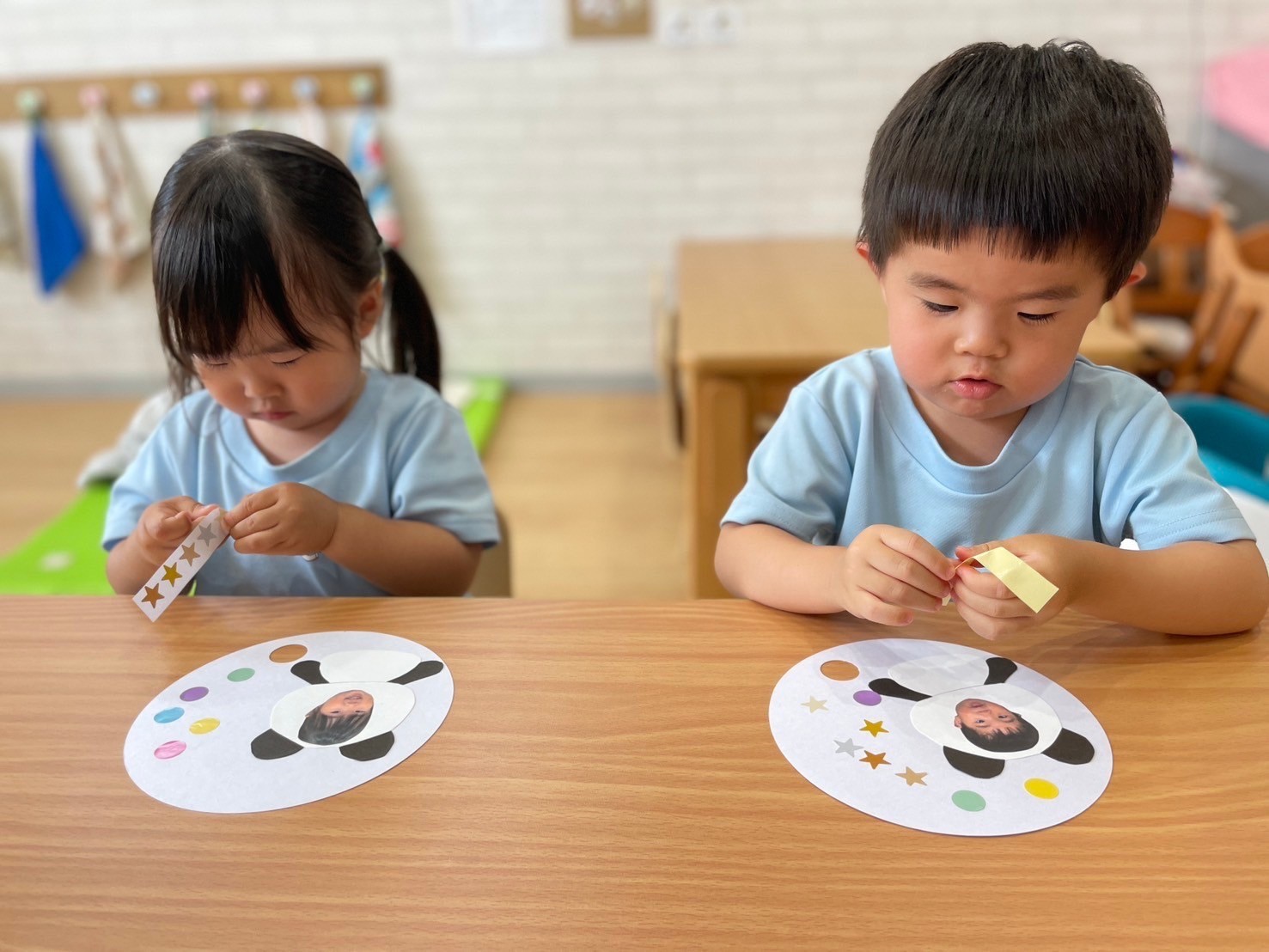 リトミックの後は、大型ブロックで遊びながら順番にシール貼りもしました⭐️