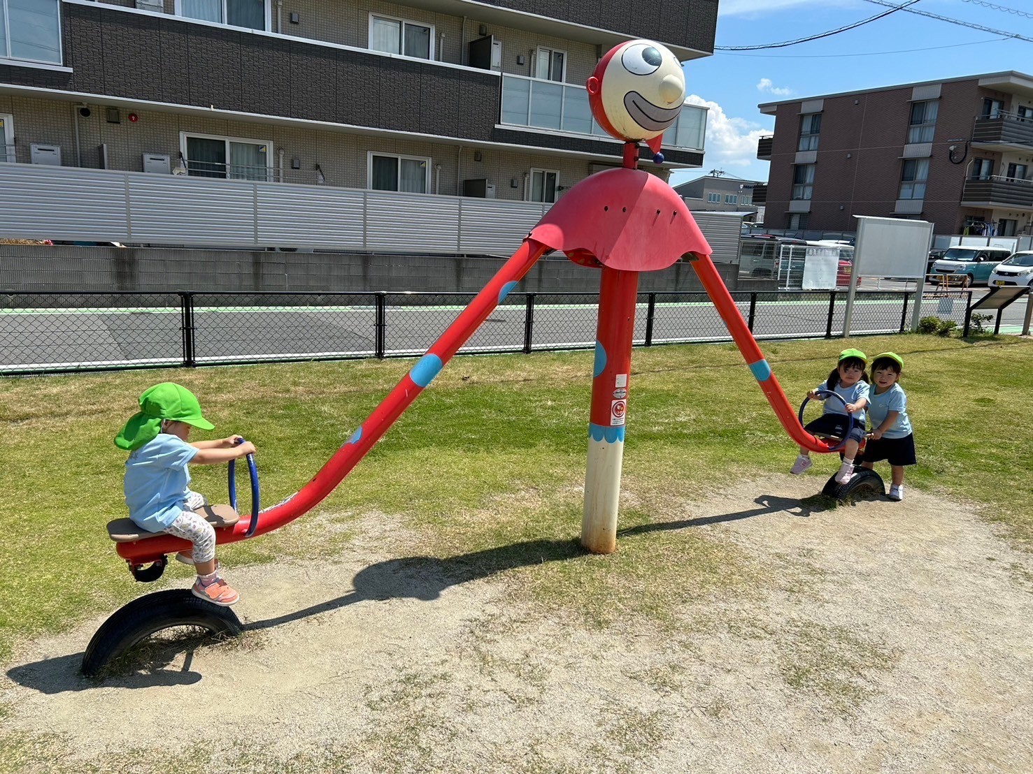 ちょっと遠い公園でしたが、🐿りす組のみんなも元気に歩いて行きました🥰💕公園では大好きな滑り台や、シーソー、ロープの遊具など、自分の好きな遊びを見つけていっぱい走る子どもたち😆(シーソー)🛝
