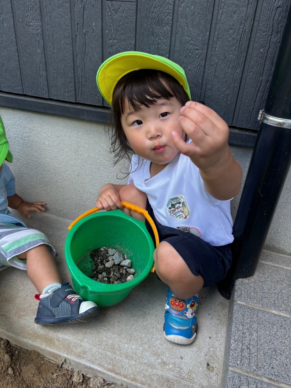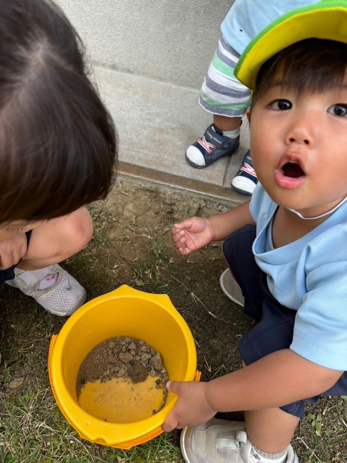 公民館に着くとダンゴムシを発見!👀😆砂遊びのバケツやスコップを持ってきてダンゴムシさんのお家を作るお友だちもいましたよ🏠梅雨入りして本格的な雨シーズンの前に☔️お散歩を楽しめて満足のみんな☺️