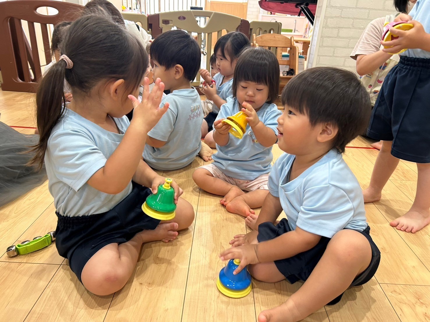 カードとベル🛎でドレミファソラシド〜🎶をしてから、カラフルなベルと鈴でおもちゃのチャチャチャを演奏🤡💓
