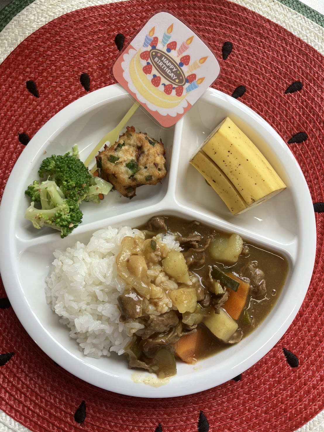 エプロンシアターの『あめふりくまのこ』ではエプロンのクマさん🐻とお歌を歌いながら楽しみました🎵【福津園の今日の給食です】