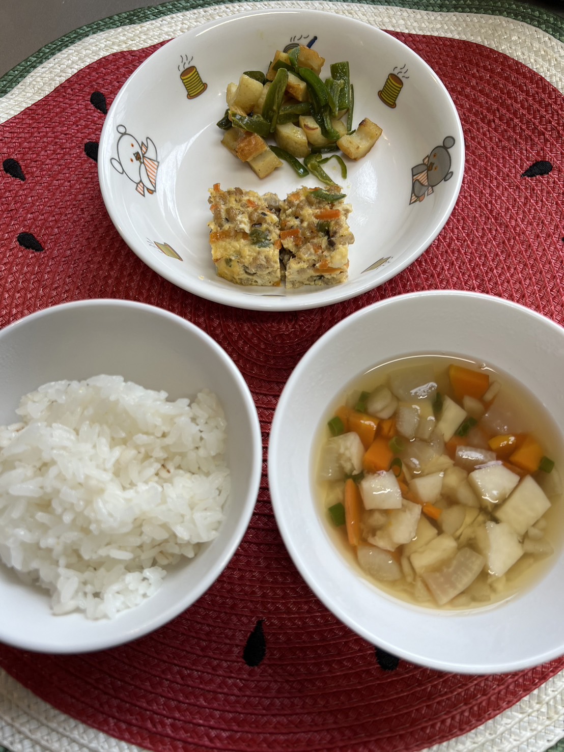 ブロック遊びをした後、🐼さんは衣装を着て運動会のダンスをノリノリで頑張りました💕お友だちもがんばれ〜🎶と応援しましたよ🙌運動会が楽しみです🥰【福津園の今日の給食です】