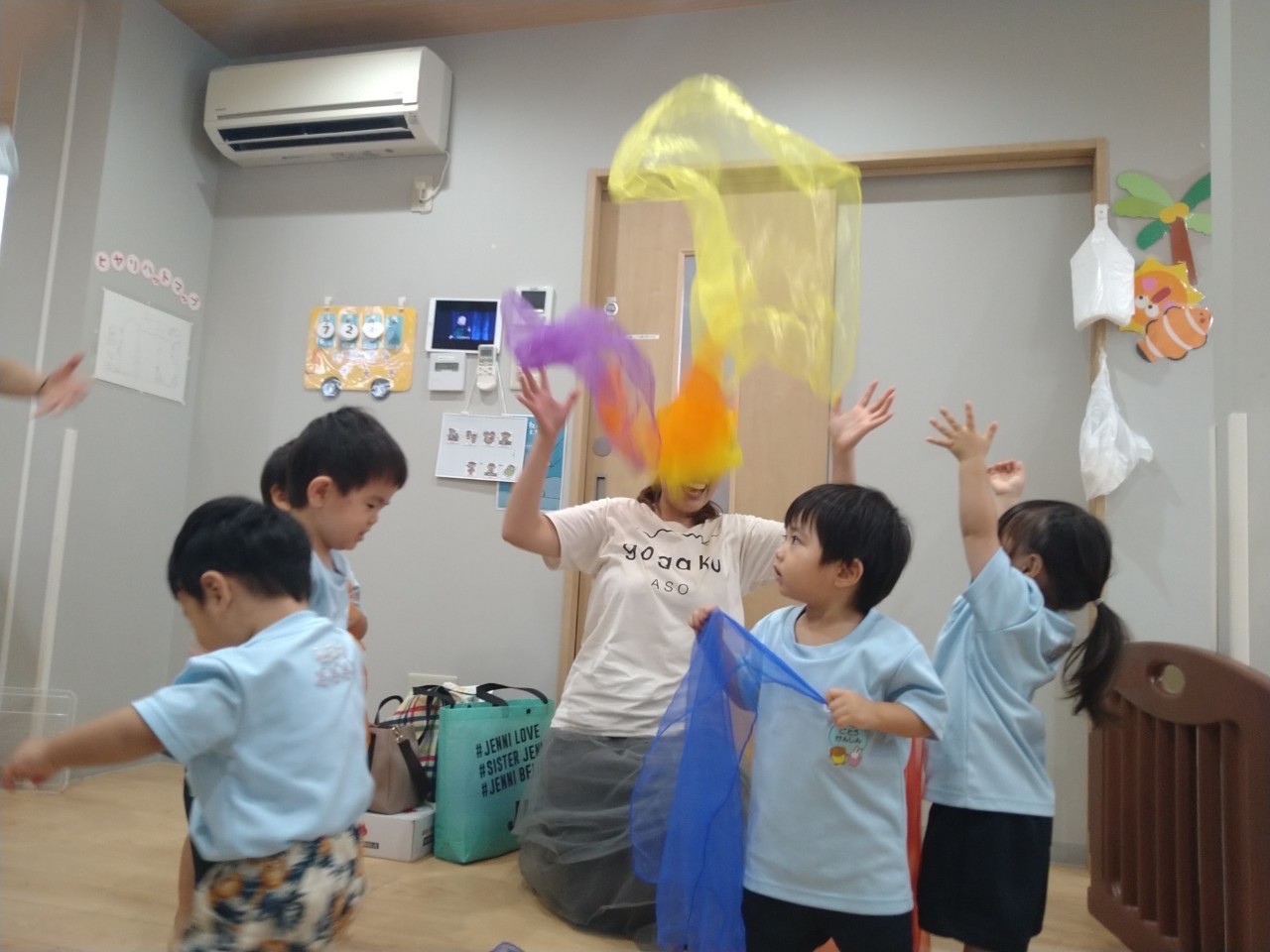 リトミックでは、紙芝居の呪文のリズムが楽しかったのか、ノリノリに唱えていましたよ‼️
