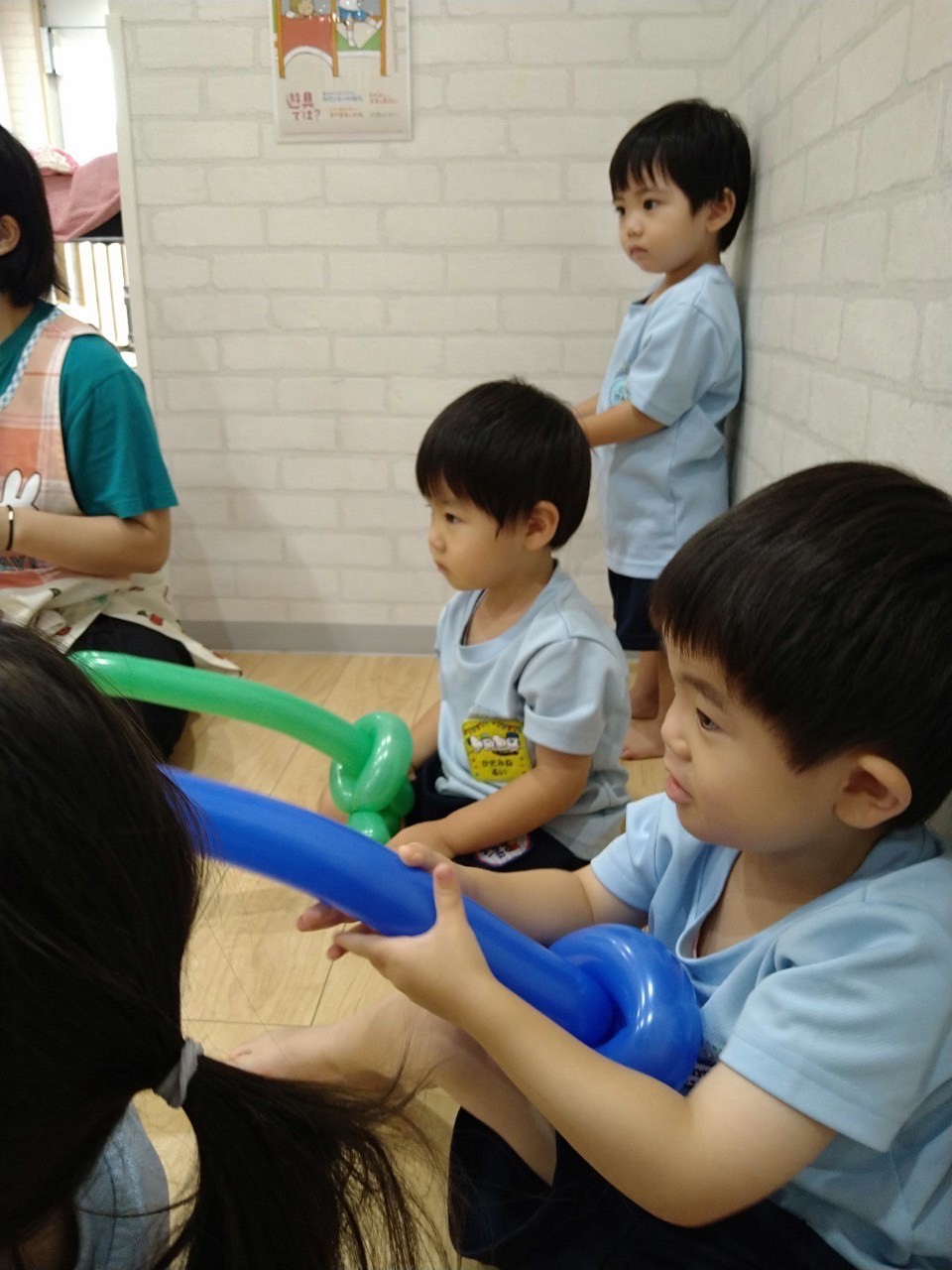 運動会、頑張ったね〜🤗の話から入り、みんなにバルーンアート🎈のプレゼント(プレゼント)